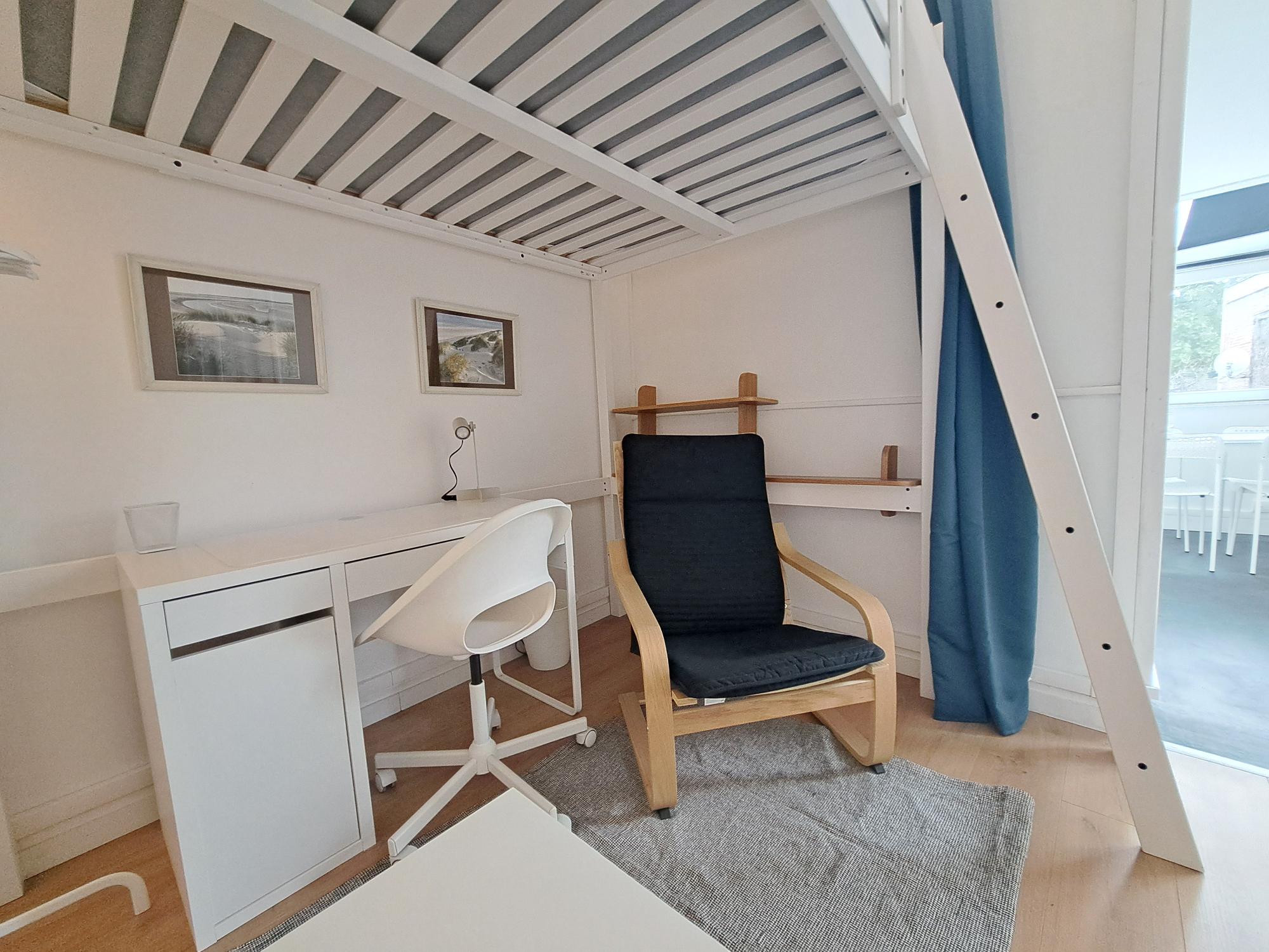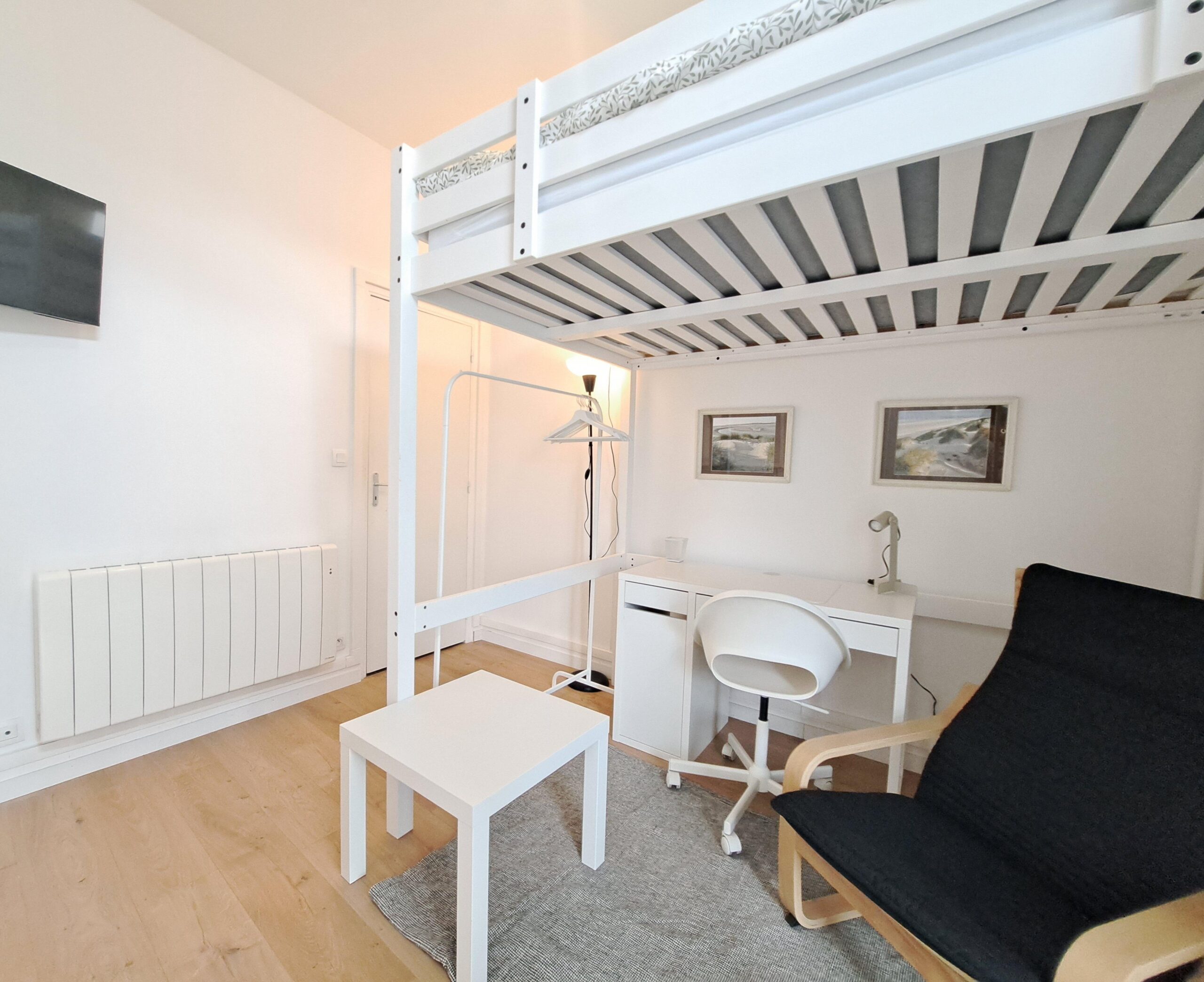 Notre élégant studio se situe au premier étage d’un immeuble du quartier de Saint-Maurice Pellevoisin. Lorsque vous rentrez dans l’appartement par un couloir. La première porte vous mène à la salle de bain avec un toilette et une douche. Puis vous accédez dans la chambre avec un lit en mezzanine de 140×200, un espace de travail et détente se trouve en dessous. De grands placards de rangement vous permettrons d’organiser votre quotidien. Ensuite vous trouverez un espace repas très lumineux et une cuisine tout équipée et très fonctionnelle.