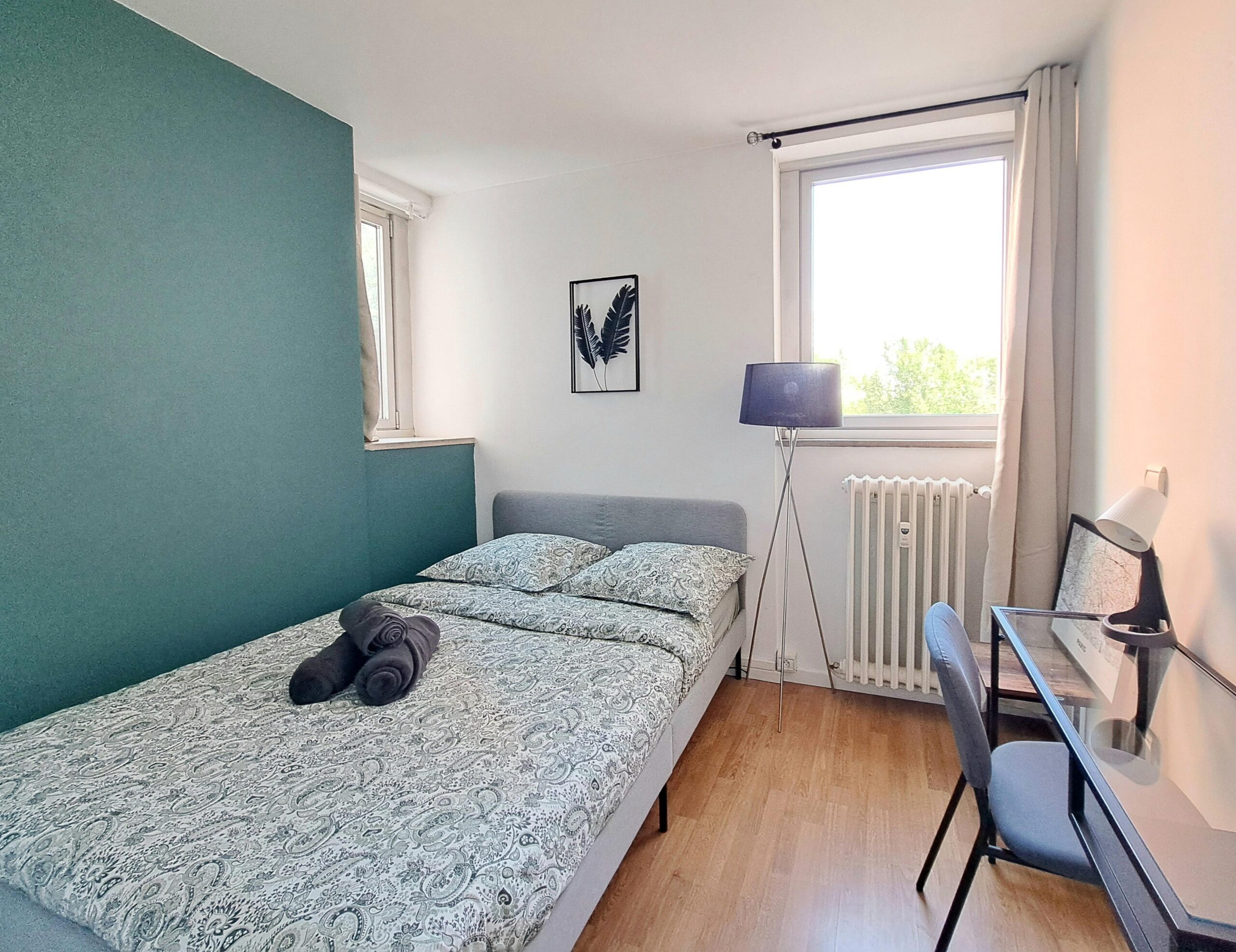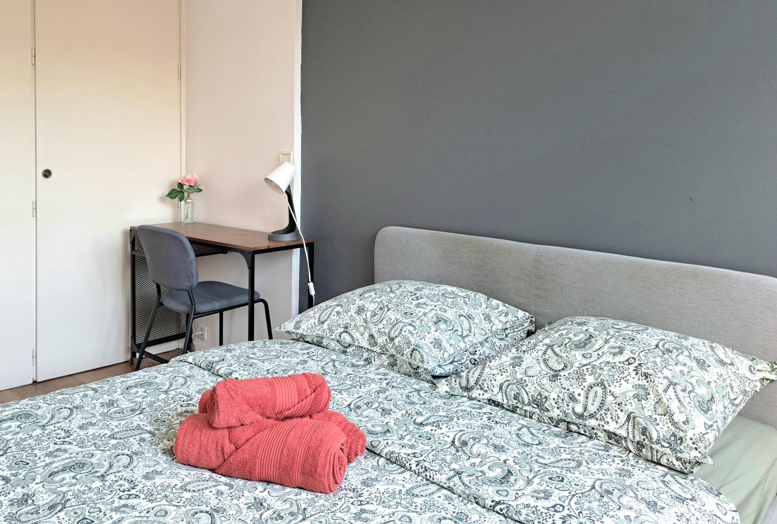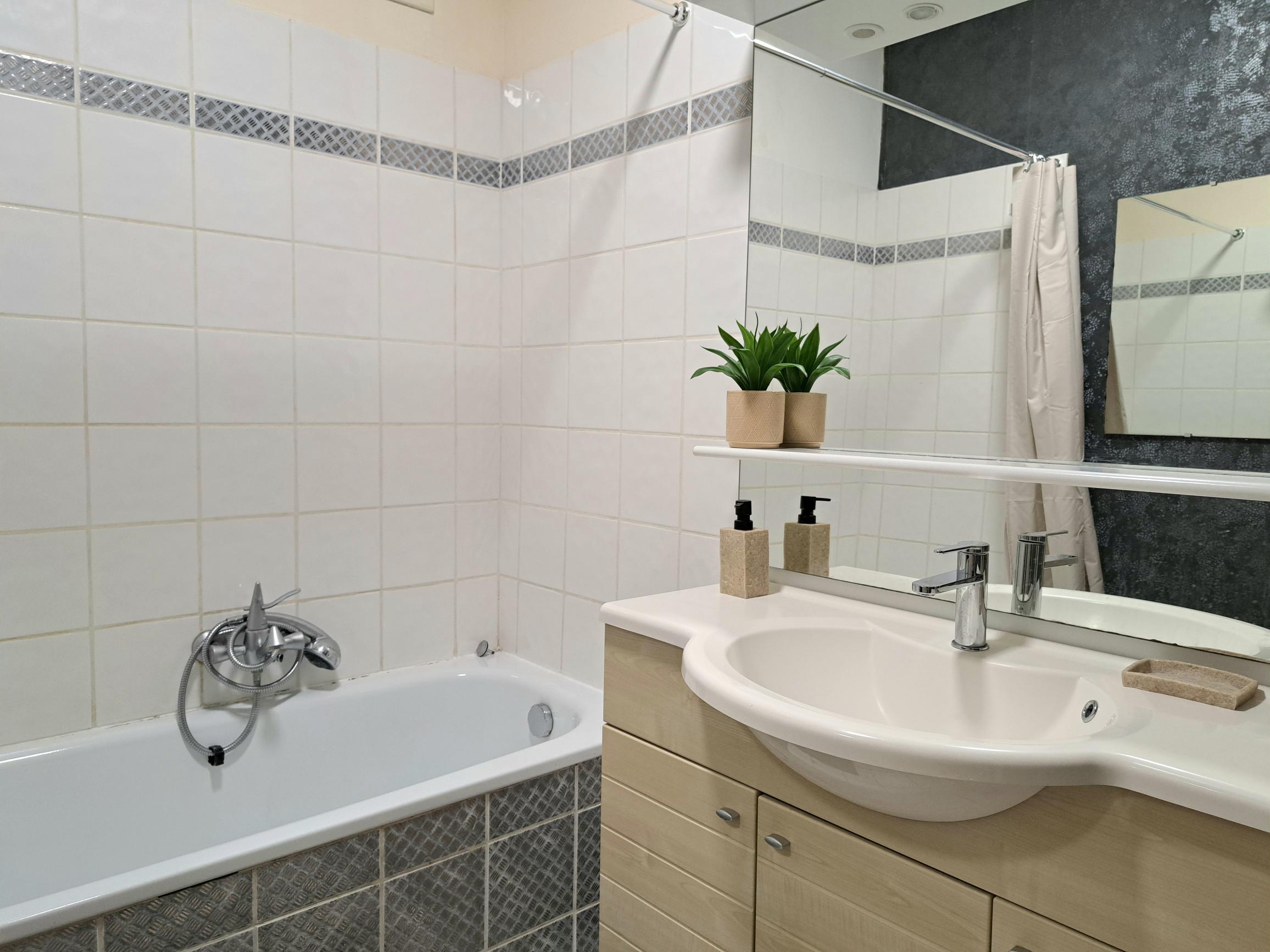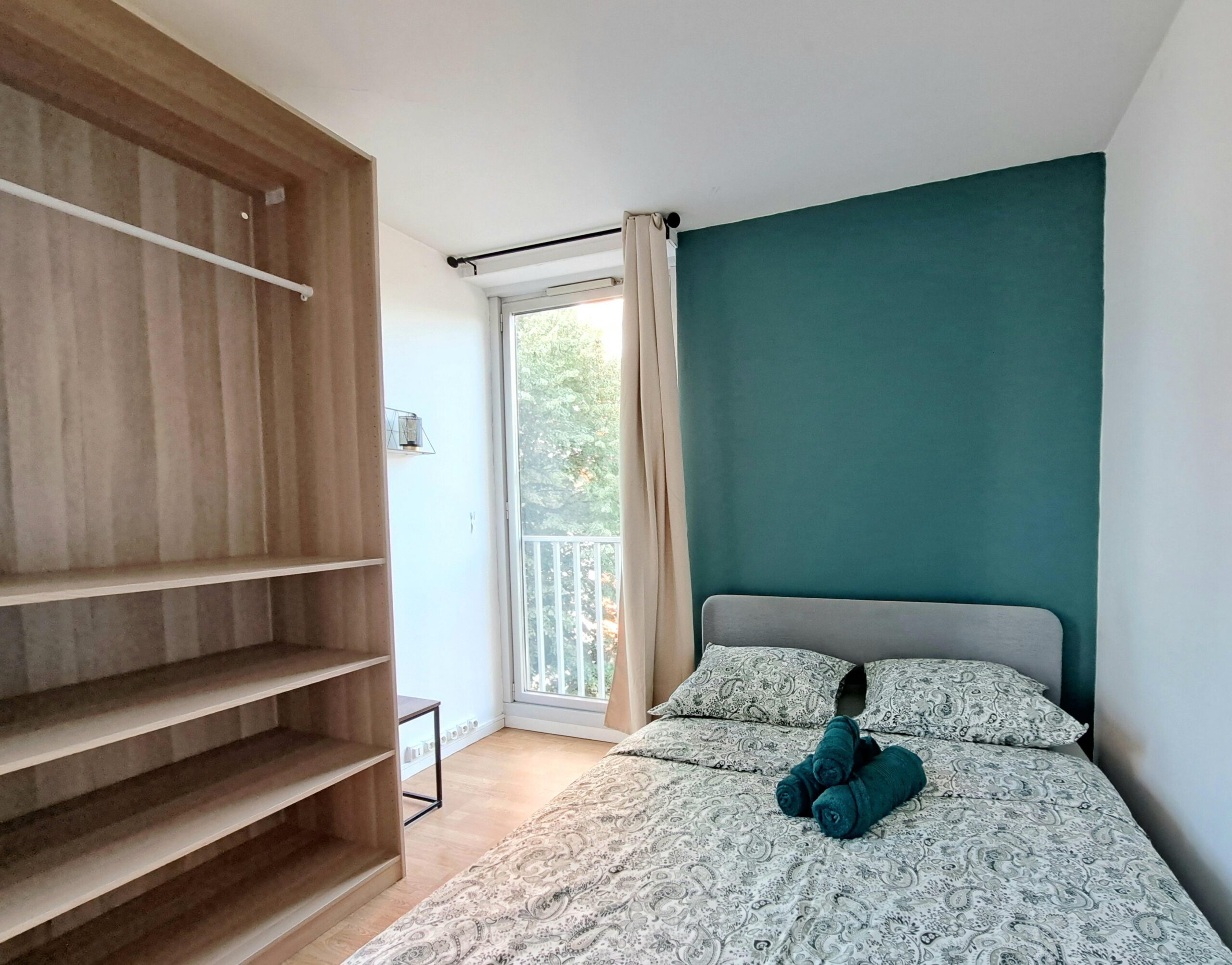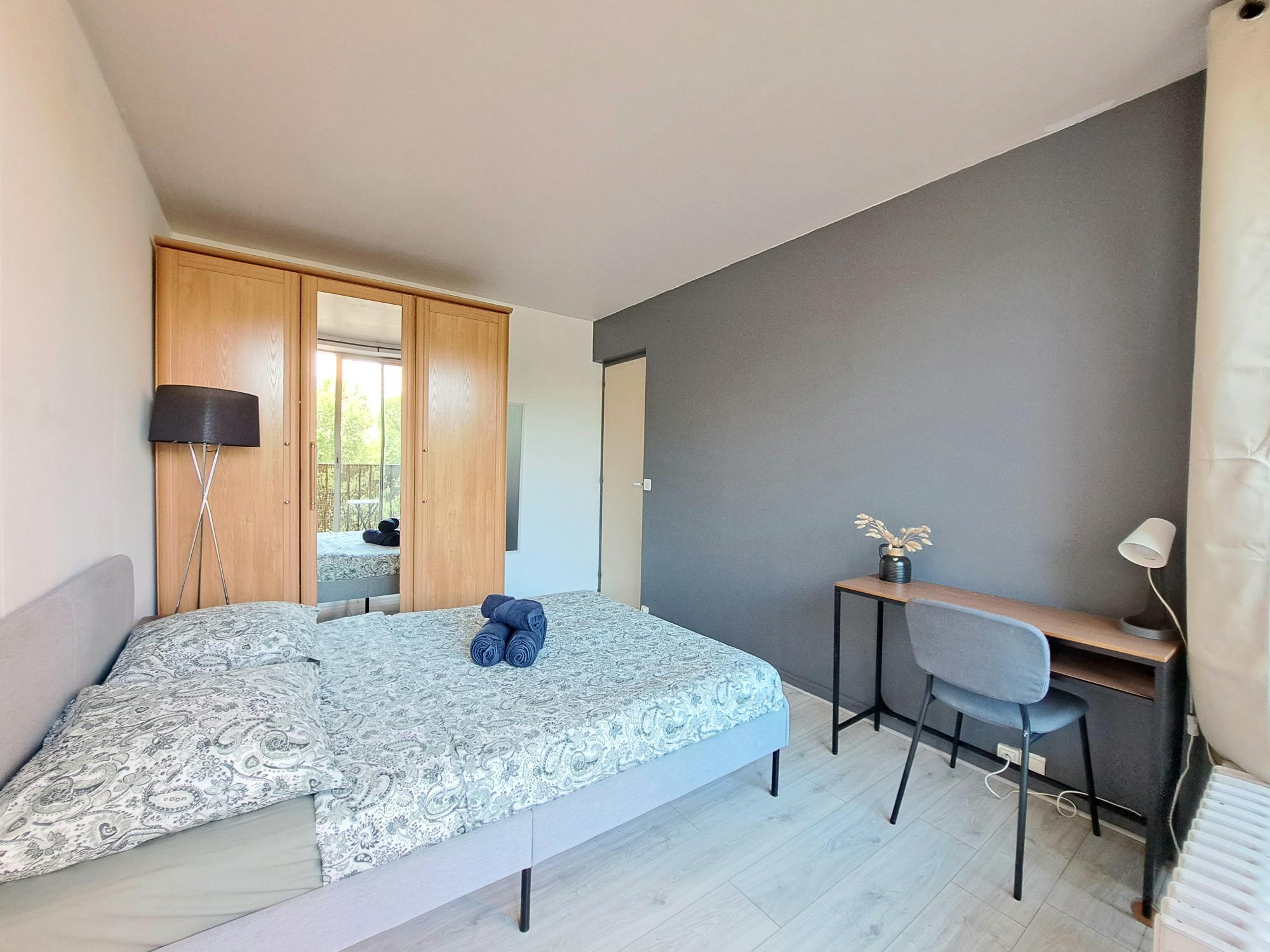 L’appartement offre un vaste salon baigné de lumière, avec un coin repas convivial, donnant accès à un grand balcon rénové, parfait pour se détendre ou partager un moment en extérieur. La cuisine, entièrement équipée, comprend notamment une machine à café pour démarrer la journée en douceur, et s’ouvre sur un espace buanderie avec machine à laver et sèche-linge. Deux salles de bain sont à votre disposition : l’une avec baignoire, l’autre avec douche. Les quatre chambres, toutes équipées d’un lit double (140 cm), disposent chacune d’un bureau et d’un dressing, pour un confort optimal. Le linge de maison et les serviettes de bain sont fournis, afin que vous vous sentiez chez vous dès votre arrivée.