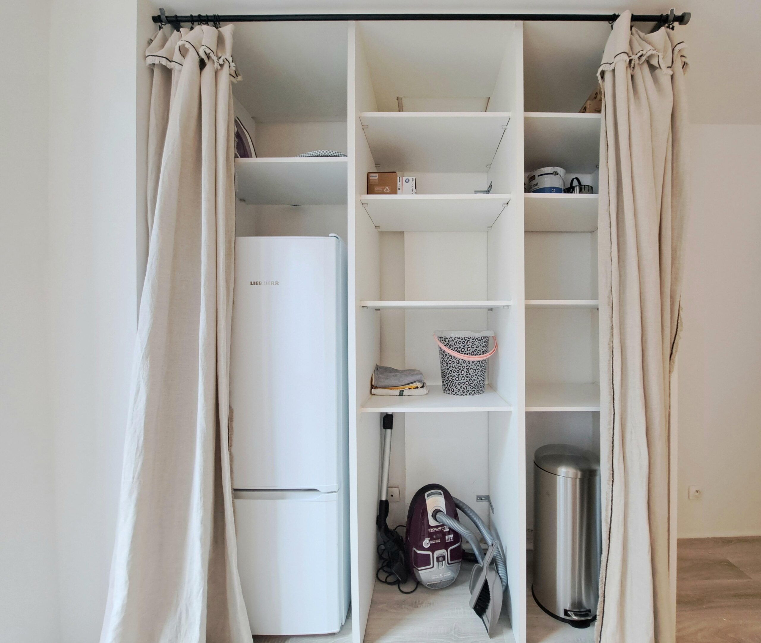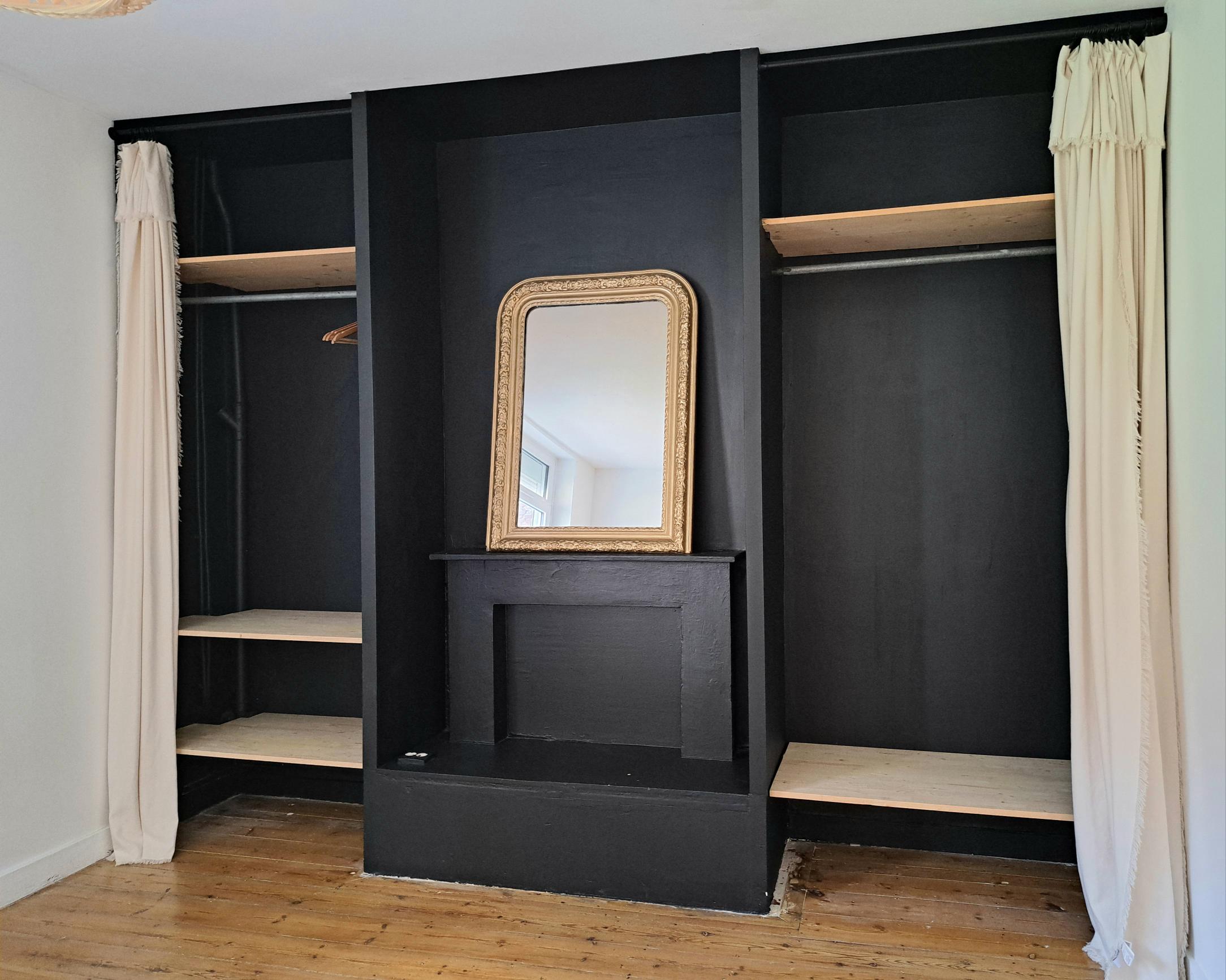 Une première chambre spacieuse se trouve au 1er étage. Elle est composée d’un lit double (largeur 160) et de rangements pour vos vêtements.