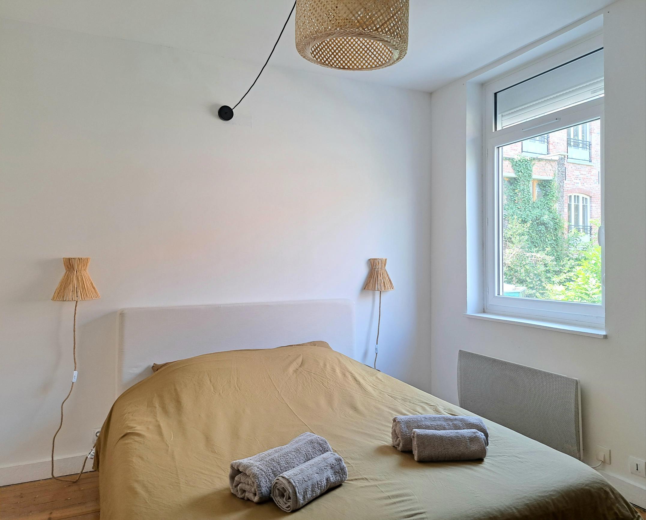 Maison calme de deux chambres, en fond de cour, à 10-15 minutes à pied des gares Lille Europe et Lille Flandres.