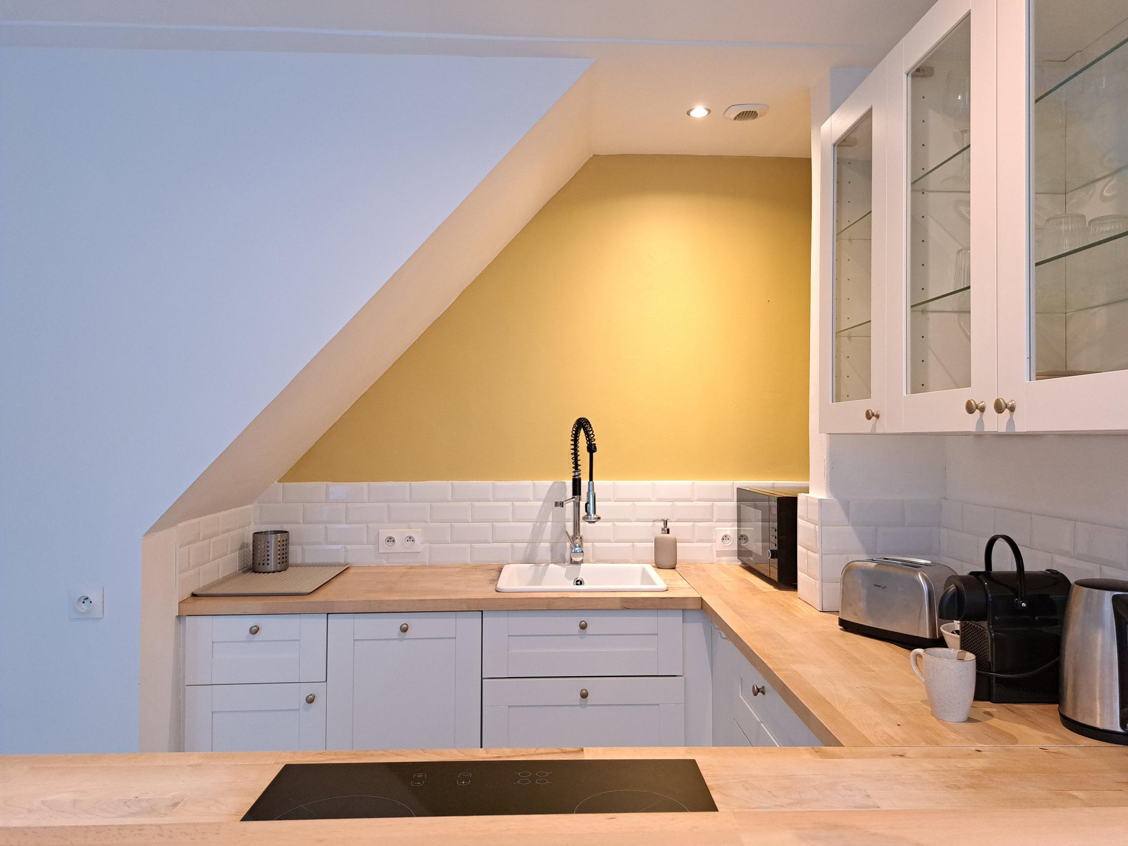 Pour accéder à votre maison, vous devrez traverser une petite cour en retrait de rue. L’accès se situe un peu avant le numéro 12 de la rue des poètes.