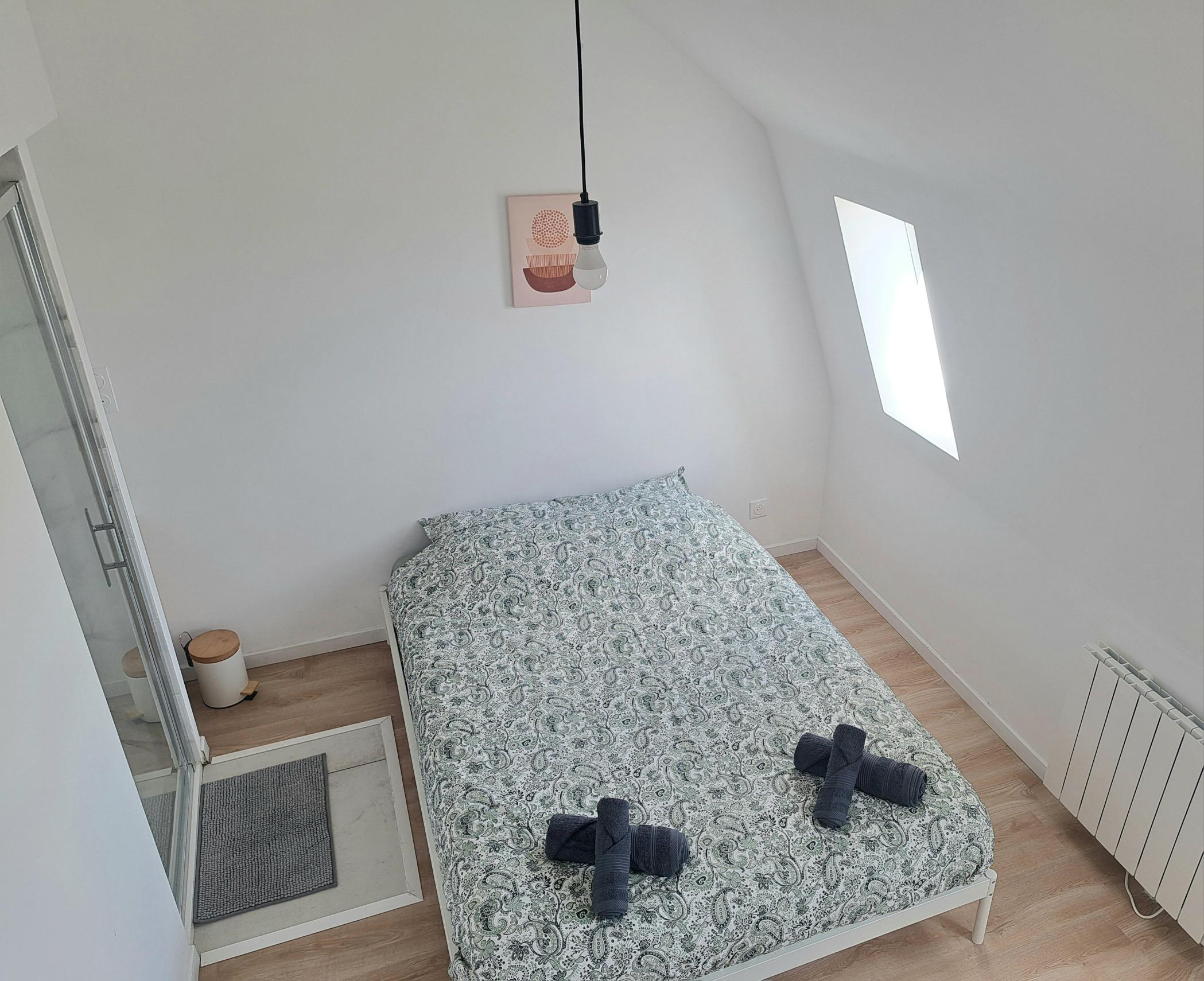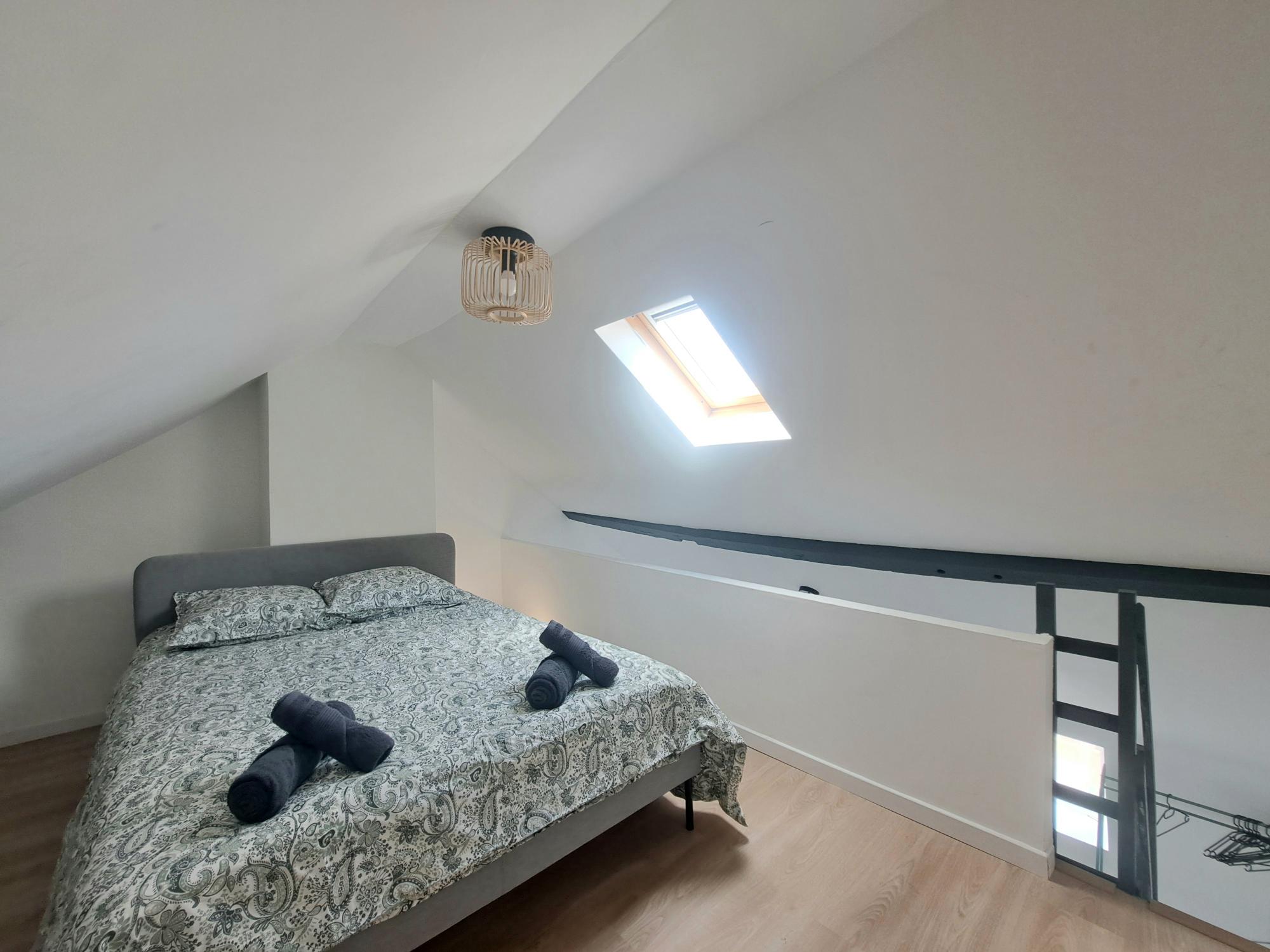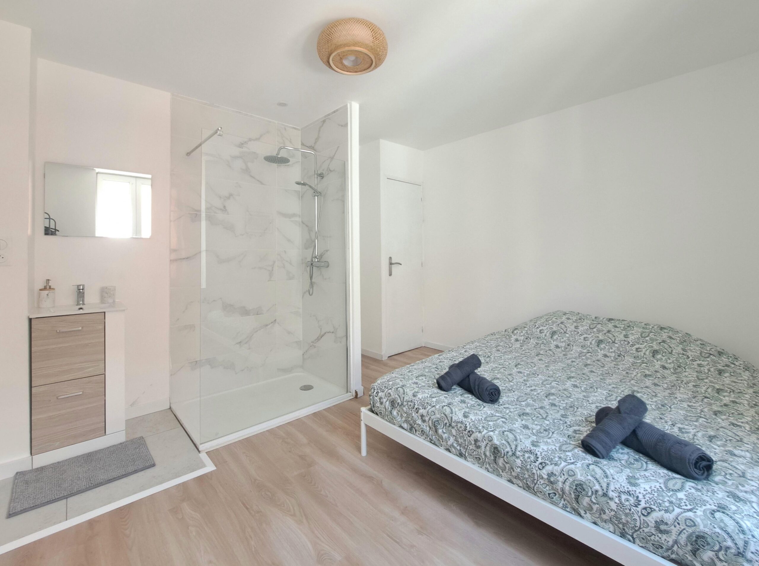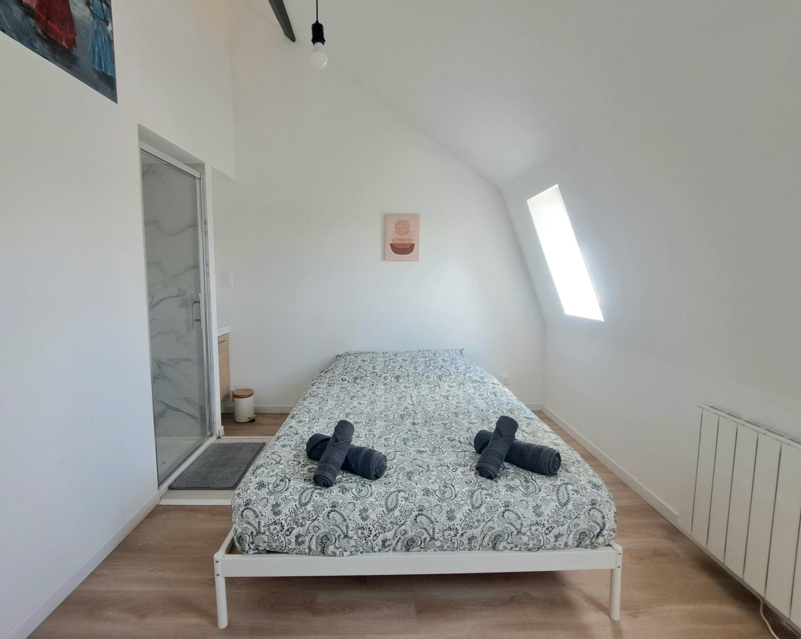 Cette maison allie espace, confort et charme. Ses deux étages lumineux offrent cinq chambres décorées avec soin, chacune équipée de literie de qualité et de salle de bain privative. La chambre avec mezzanine permet un couchage supplémentaire et apporte un esprit loft unique. La cuisine toute équipée invite à préparer de bons repas, tandis que le salon convivial est parfait pour se retrouver. La grande cour extérieure, entièrement réaménagée, offre un lieu idéal pour vos repas d’été ou moments de détente. Située au centre-ville, elle vous permet de rejoindre à pied restaurants, commerces et lieux culturels, tout en restant un cocon paisible après vos journées actives.