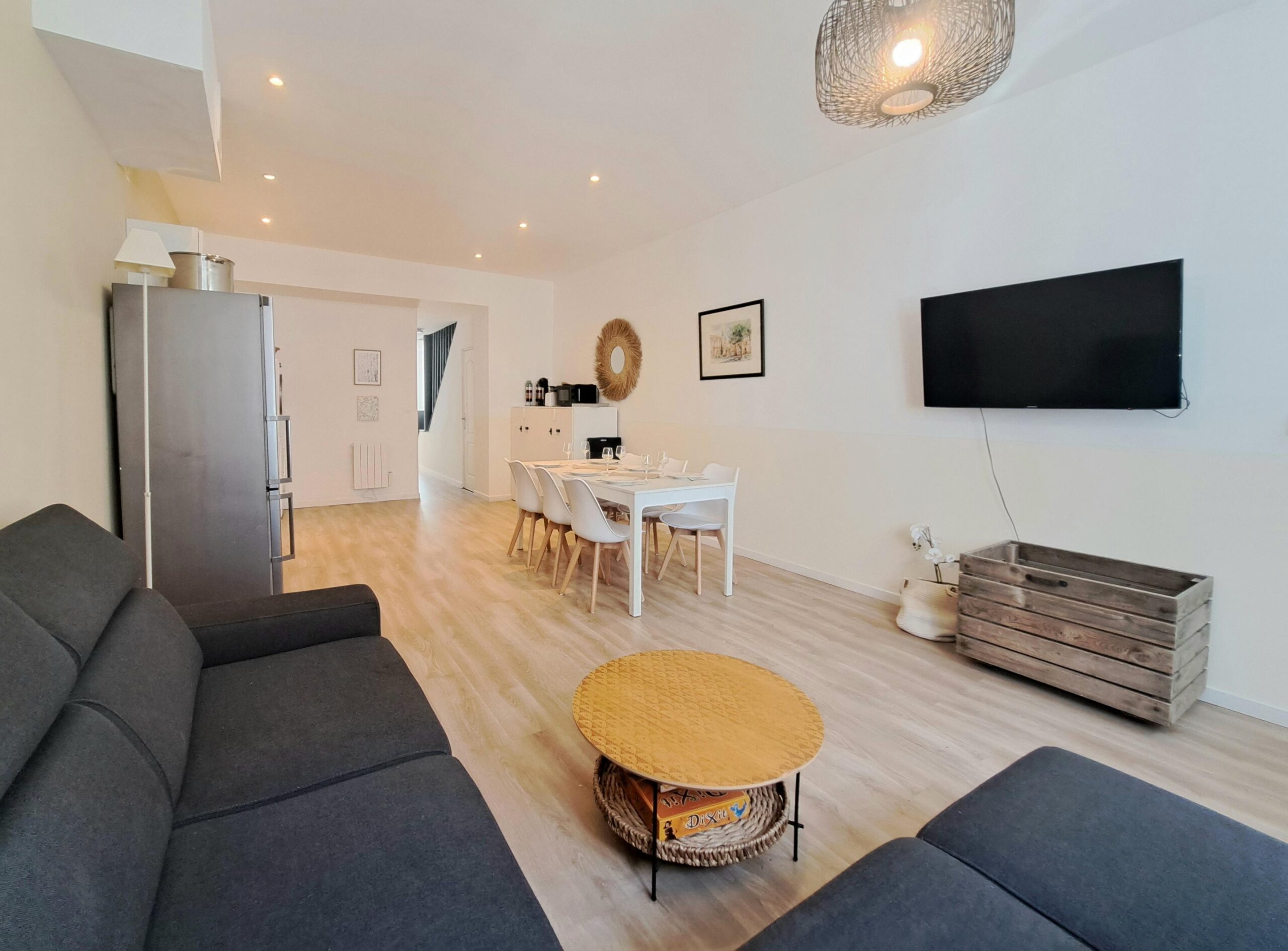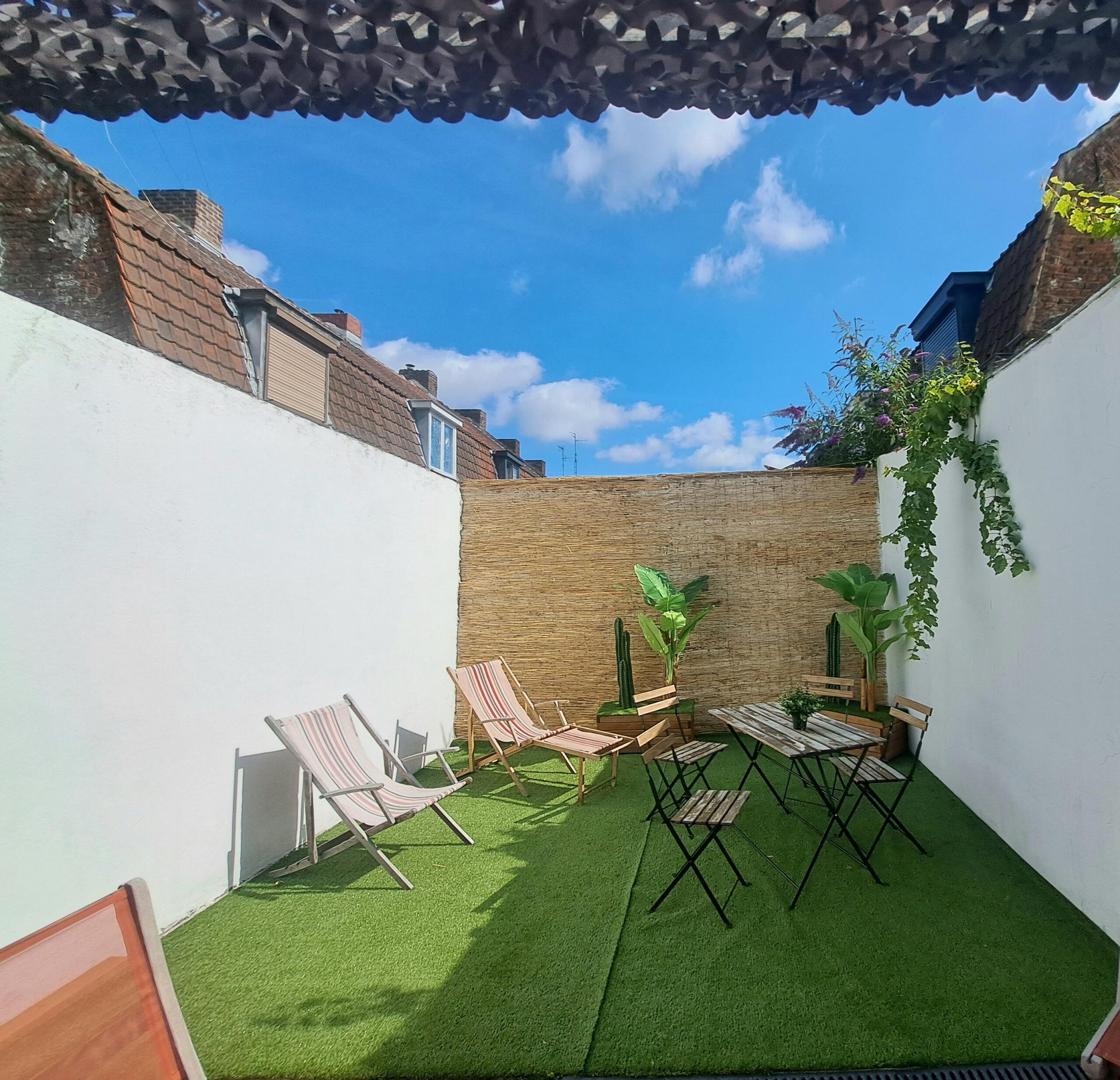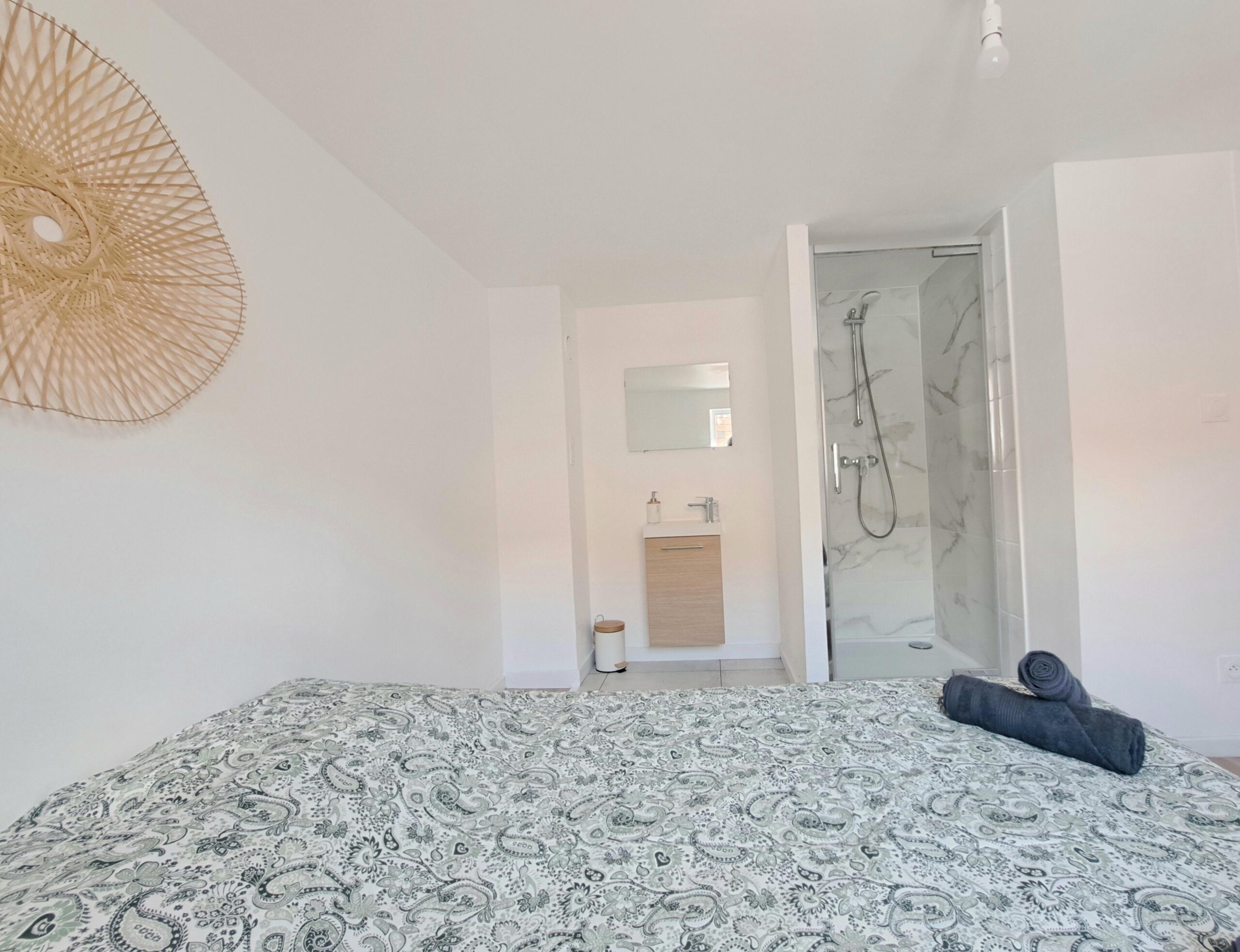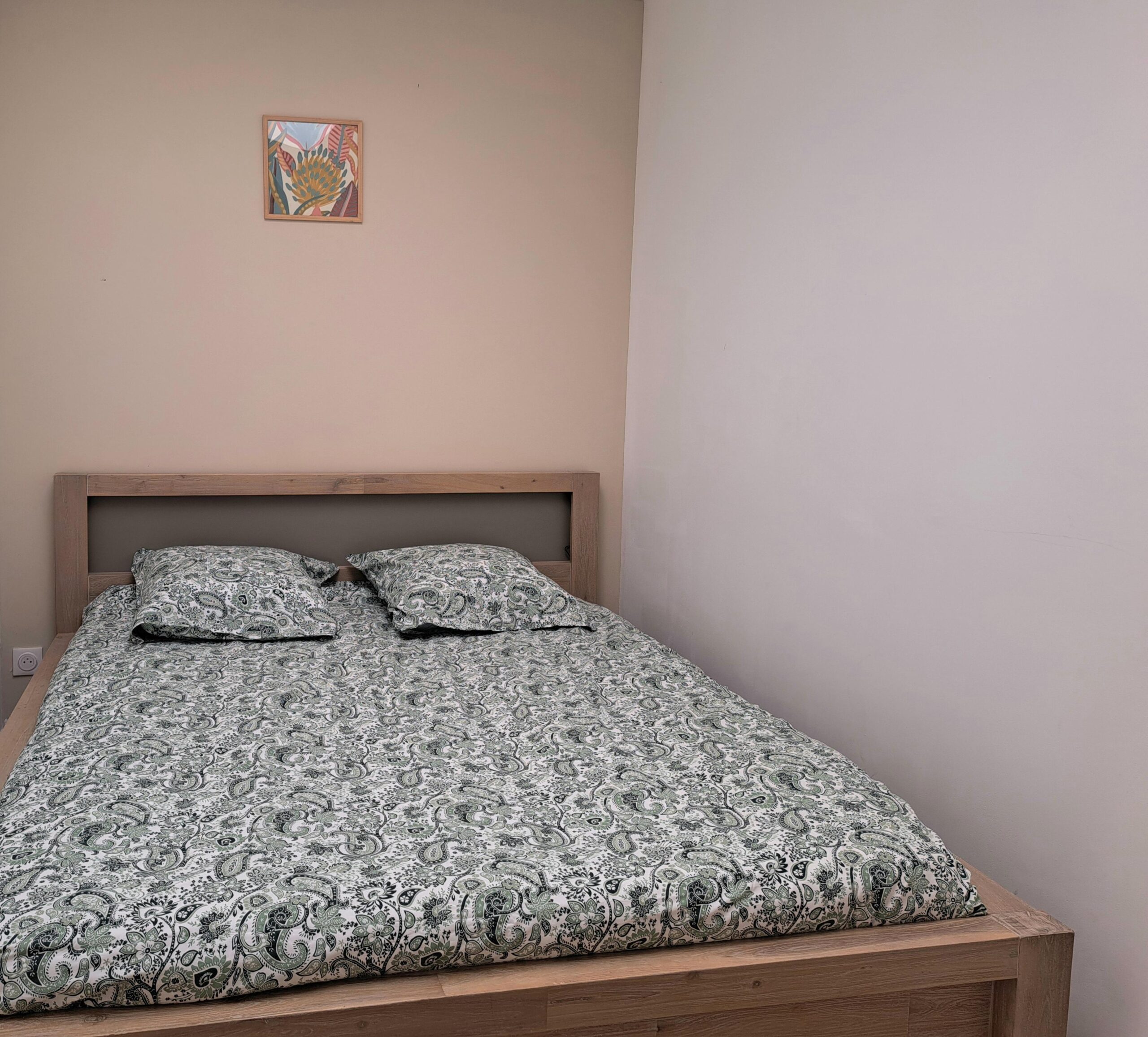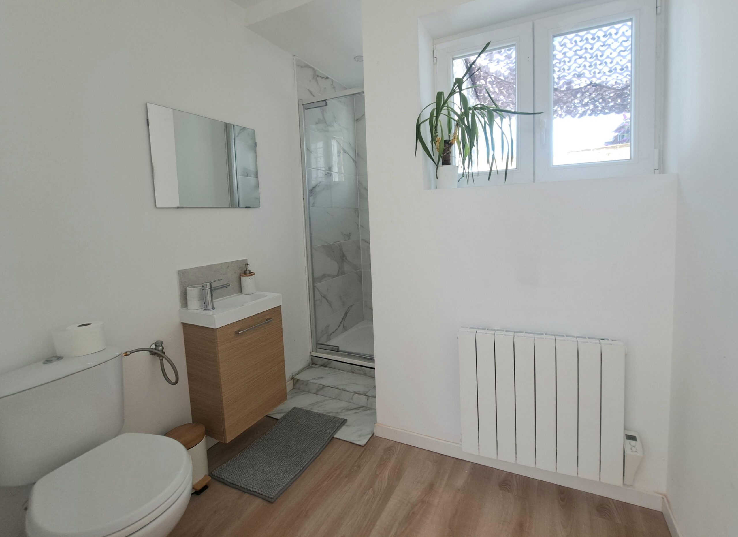 Cette maison allie espace, confort et charme. Ses deux étages lumineux offrent cinq chambres décorées avec soin, chacune équipée de literie de qualité et de salle de bain privative. La chambre avec mezzanine permet un couchage supplémentaire et apporte un esprit loft unique. La cuisine toute équipée invite à préparer de bons repas, tandis que le salon convivial est parfait pour se retrouver. La grande cour extérieure, entièrement réaménagée, offre un lieu idéal pour vos repas d’été ou moments de détente. Située au centre-ville, elle vous permet de rejoindre à pied restaurants, commerces et lieux culturels, tout en restant un cocon paisible après vos journées actives.