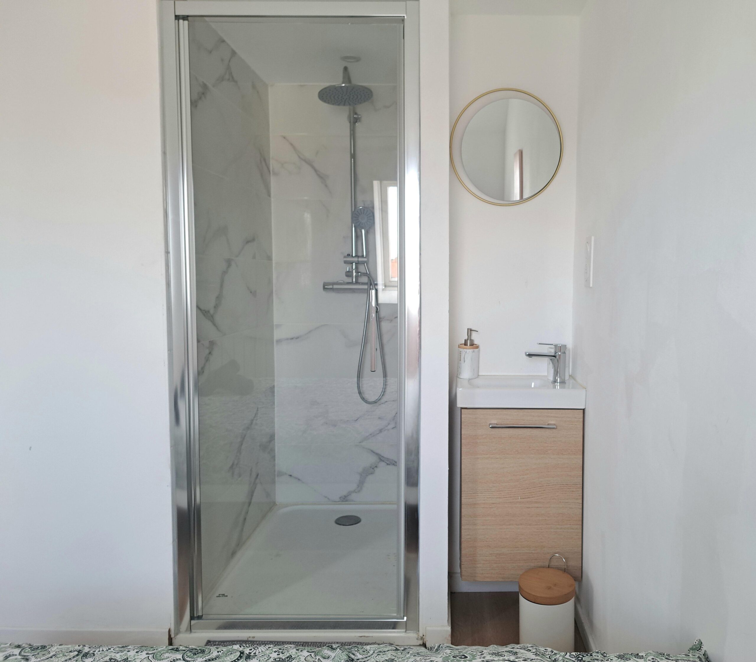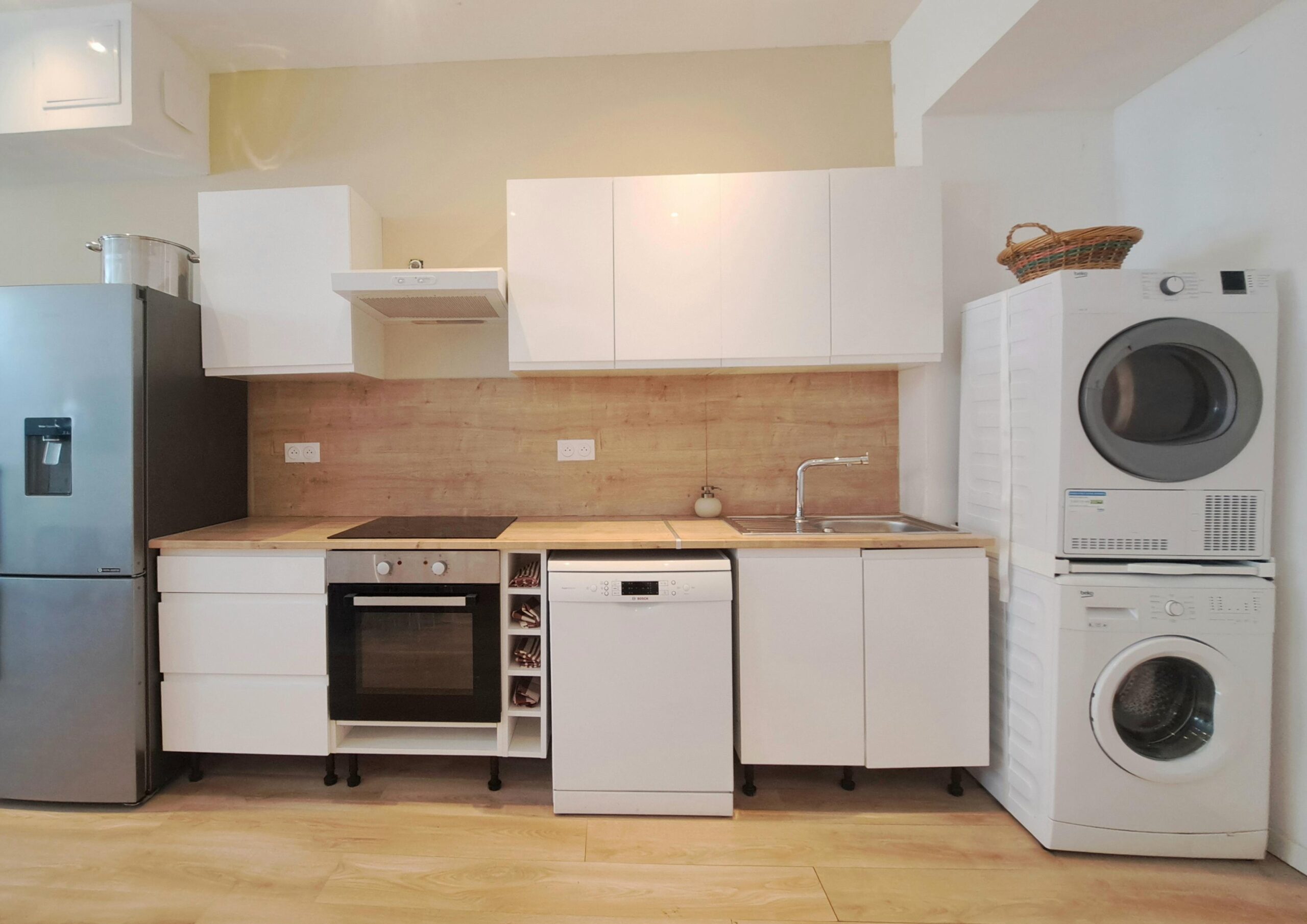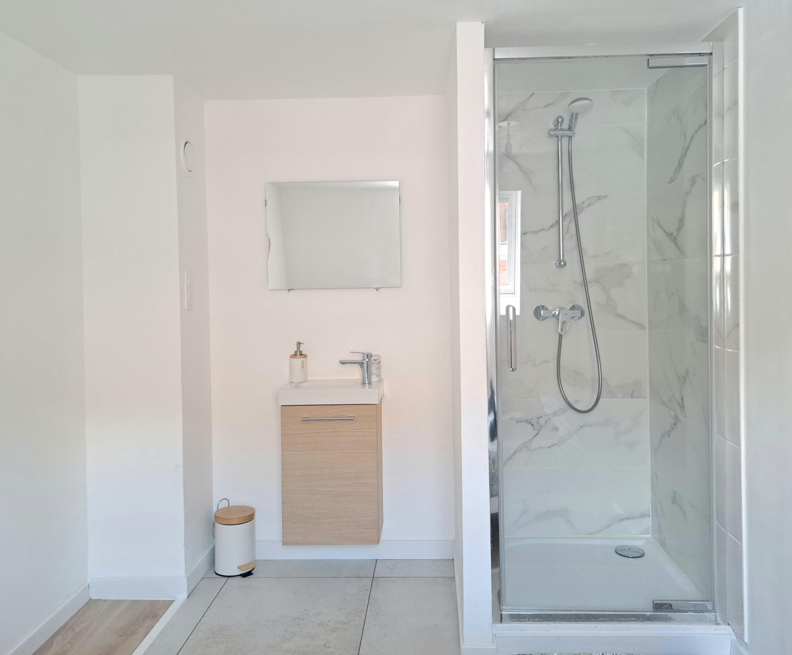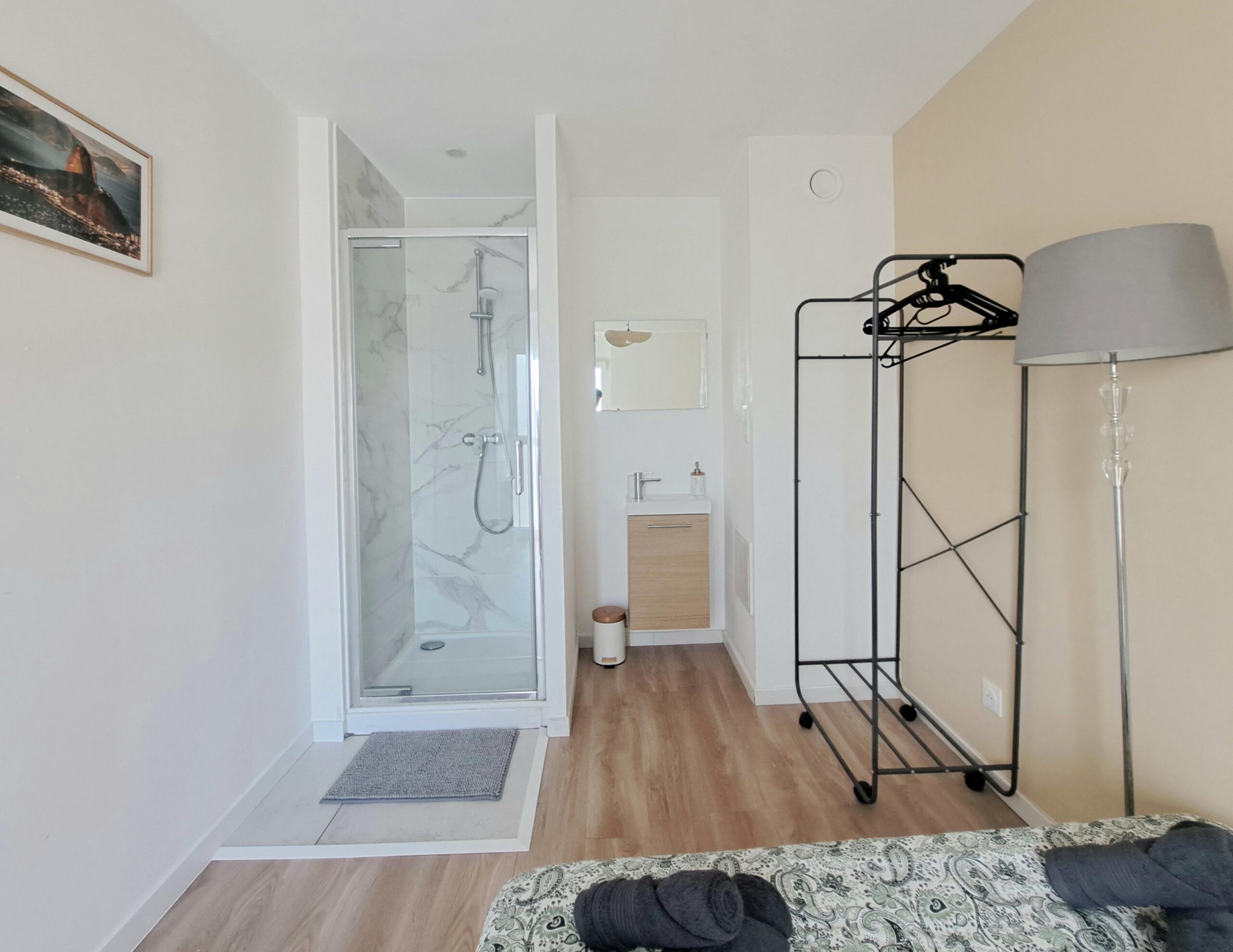 Cette maison allie espace, confort et charme. Ses deux étages lumineux offrent cinq chambres décorées avec soin, chacune équipée de literie de qualité et de salle de bain privative. La chambre avec mezzanine permet un couchage supplémentaire et apporte un esprit loft unique. La cuisine toute équipée invite à préparer de bons repas, tandis que le salon convivial est parfait pour se retrouver. La grande cour extérieure, entièrement réaménagée, offre un lieu idéal pour vos repas d’été ou moments de détente. Située au centre-ville, elle vous permet de rejoindre à pied restaurants, commerces et lieux culturels, tout en restant un cocon paisible après vos journées actives.