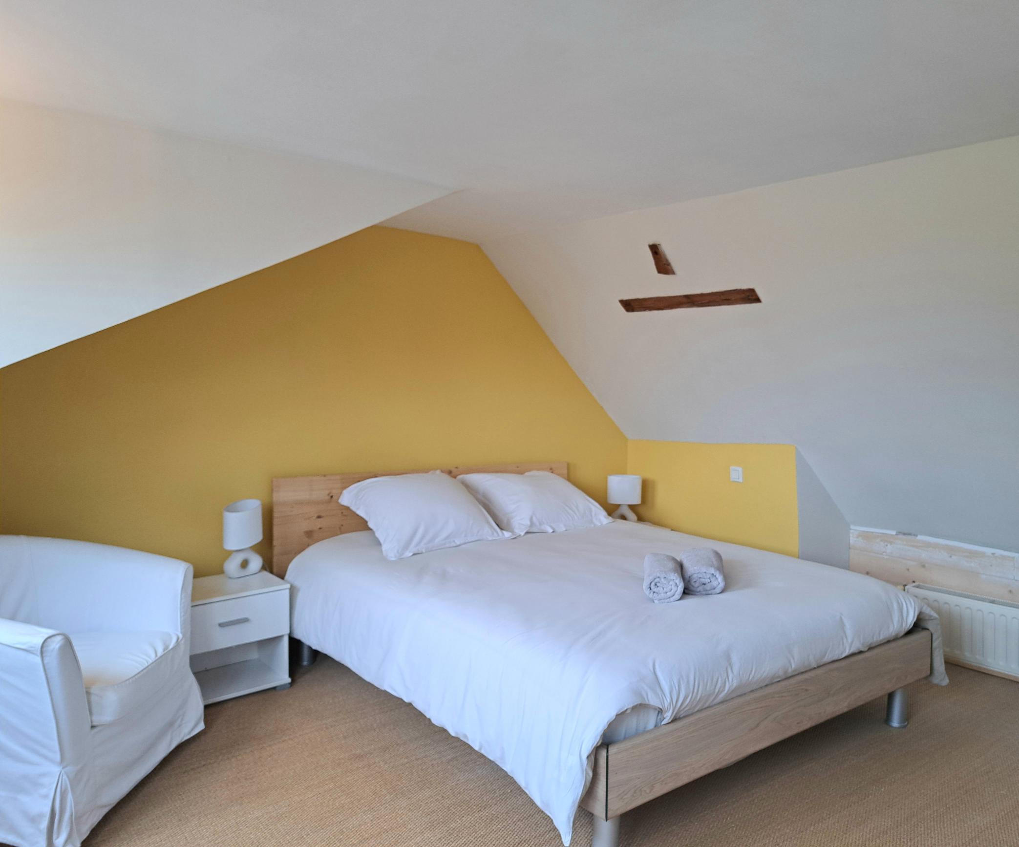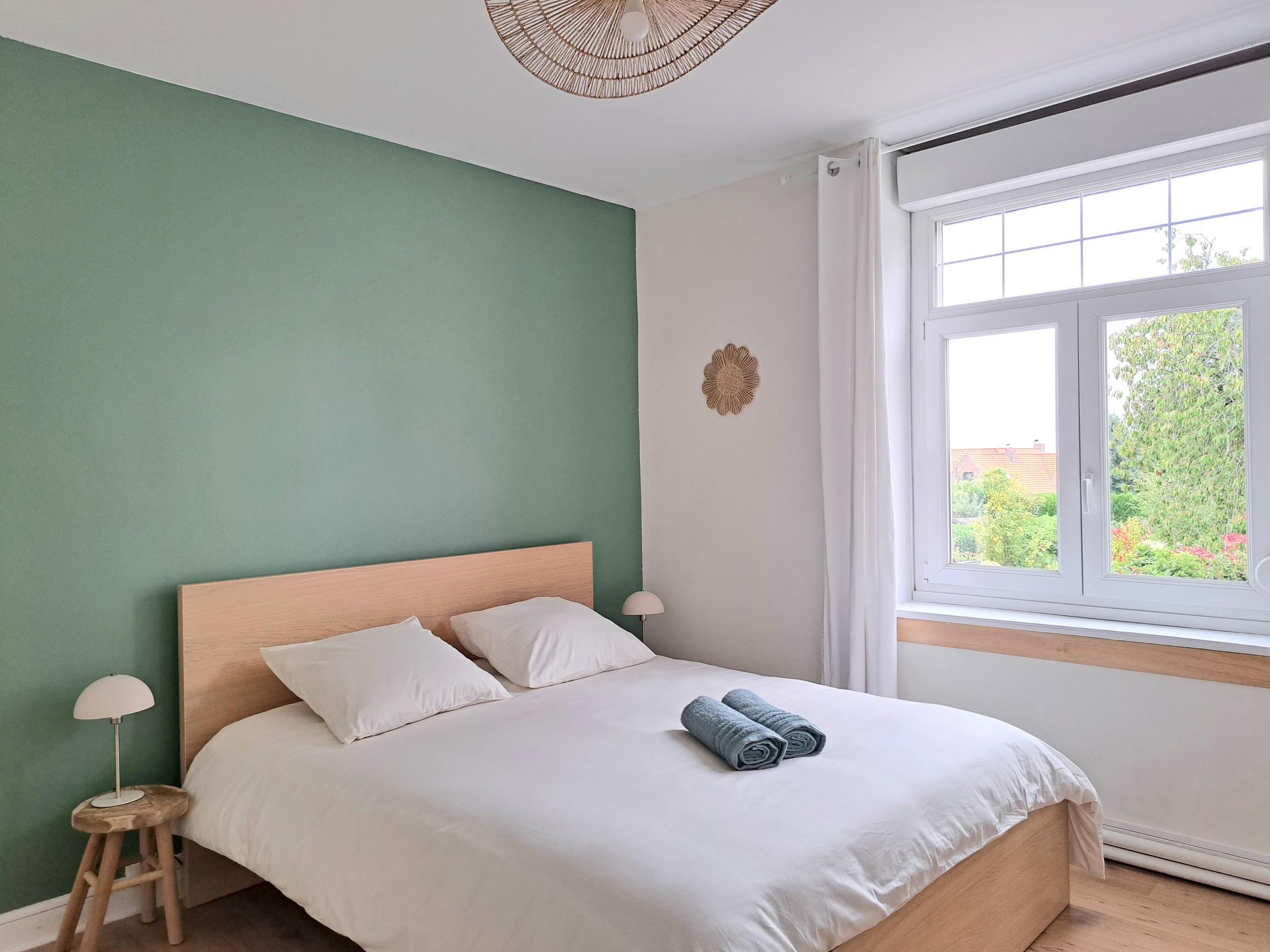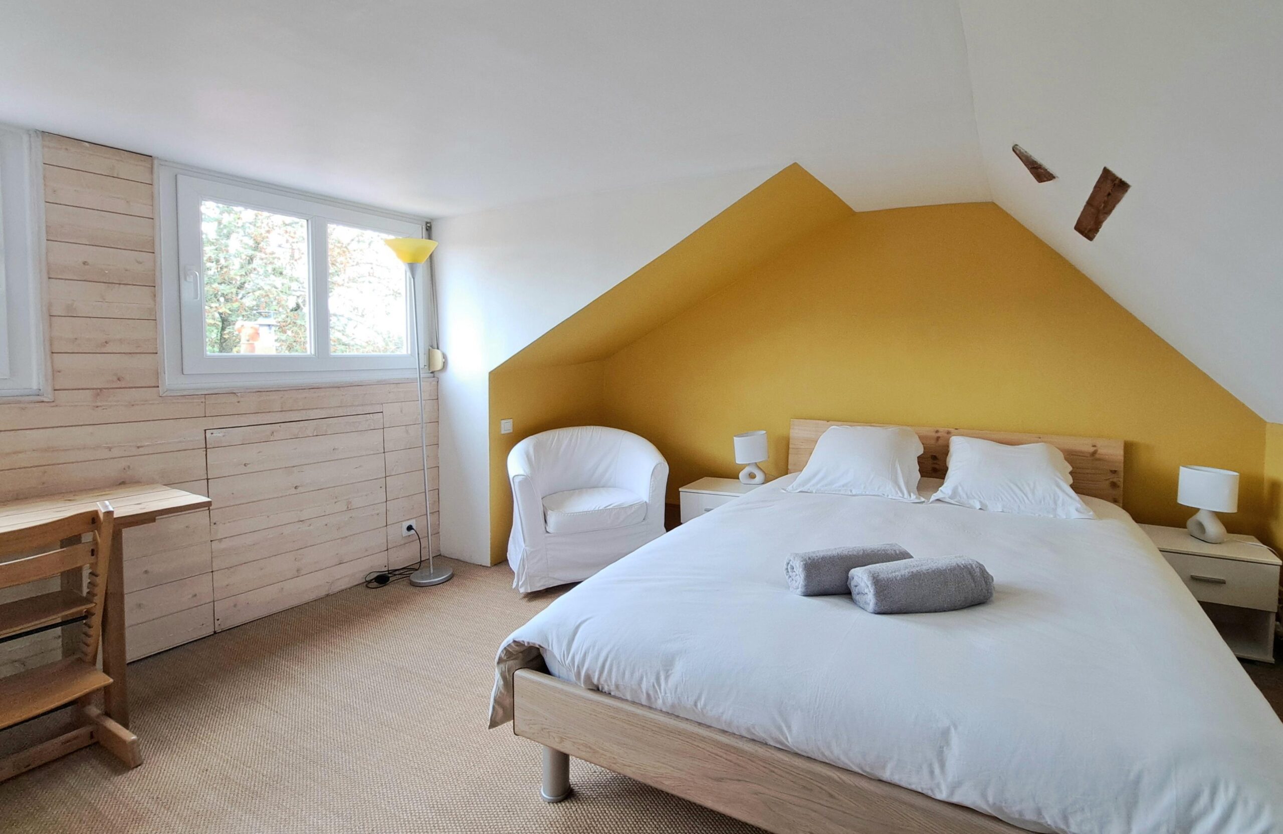La seconde, bénéficie d’une vue sur le jardin. Elle est équipée d’un lit double (largeur 160 cm), d’un bureau et d’un grand placard.
