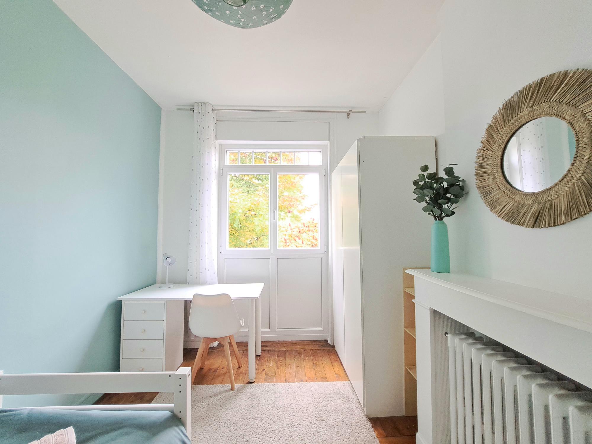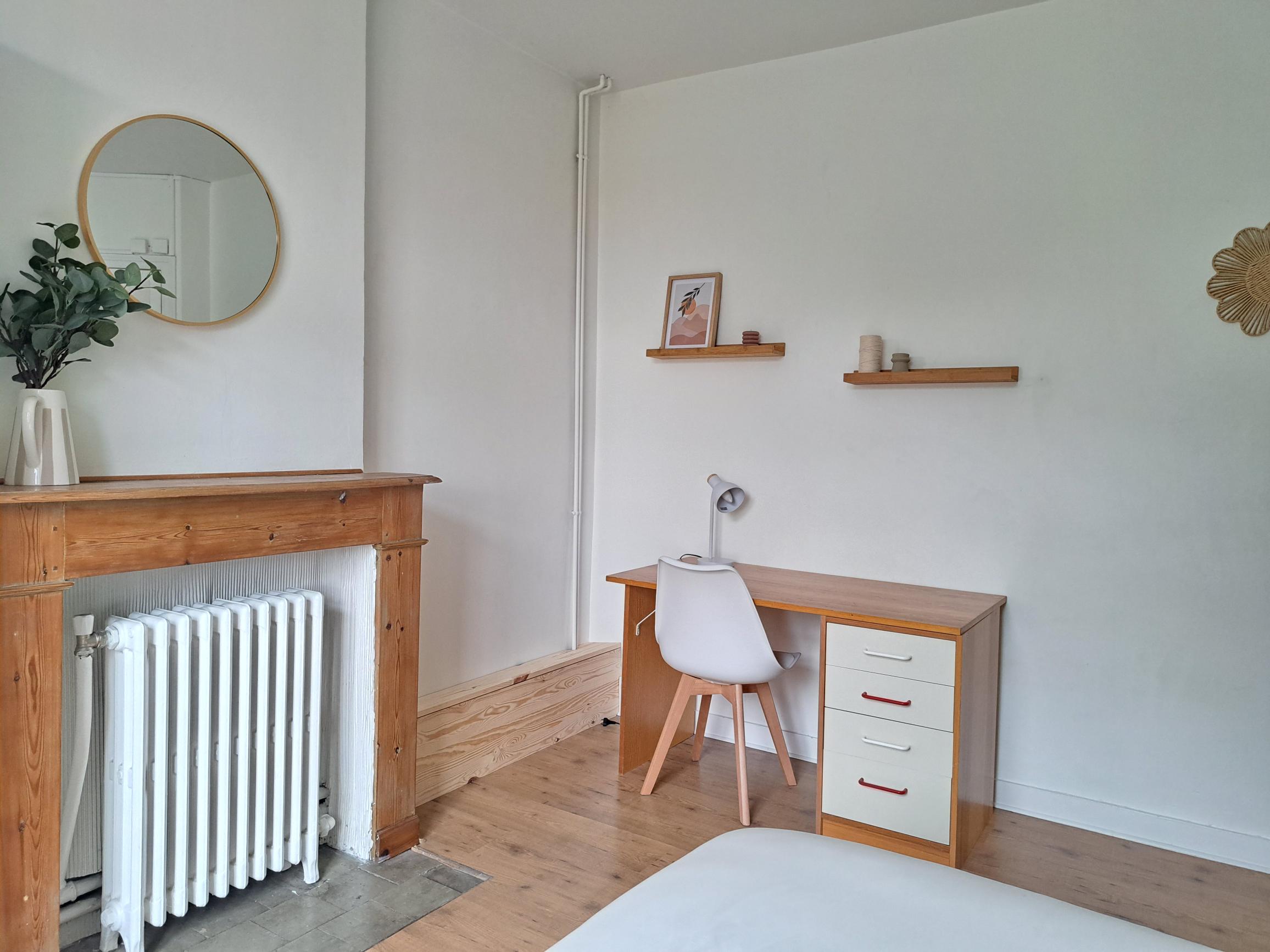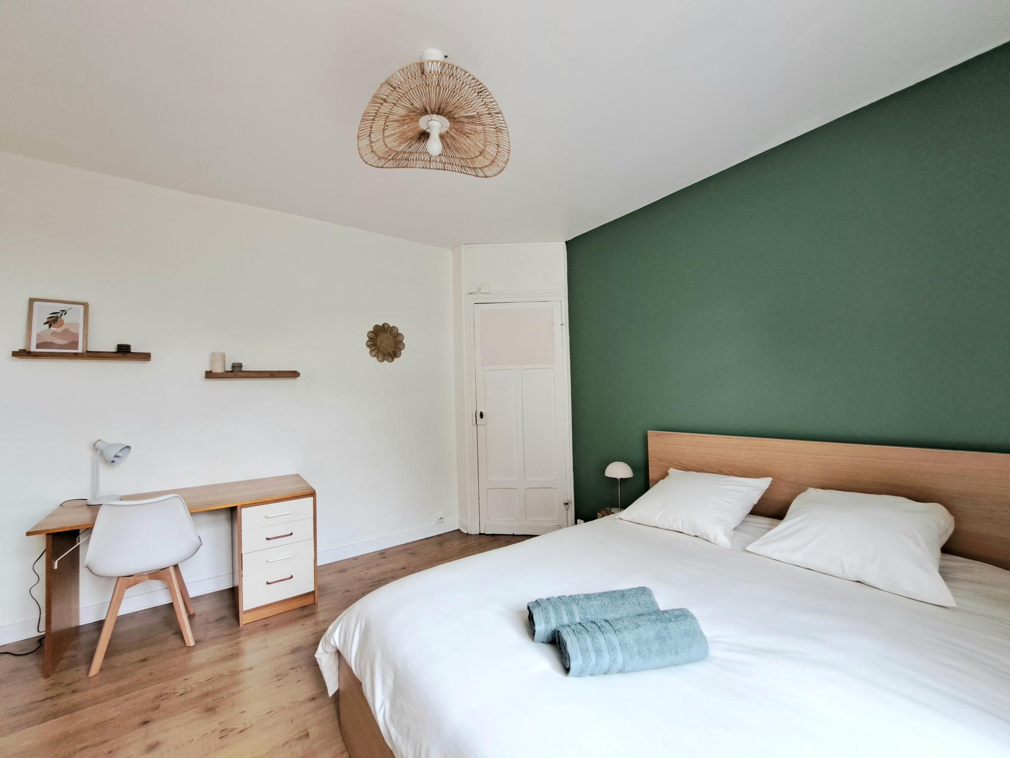 La seconde, bénéficie d’une vue sur le jardin. Elle est équipée d’un lit double (largeur 160 cm), d’un bureau et d’un grand placard.