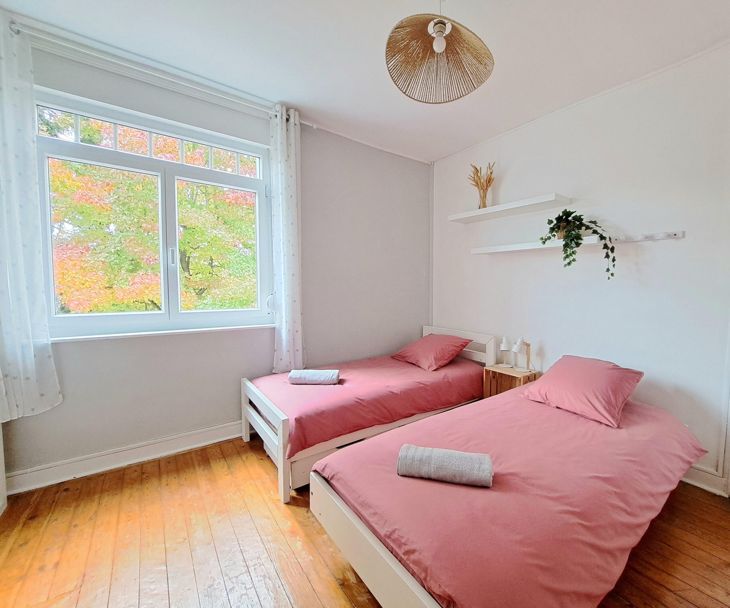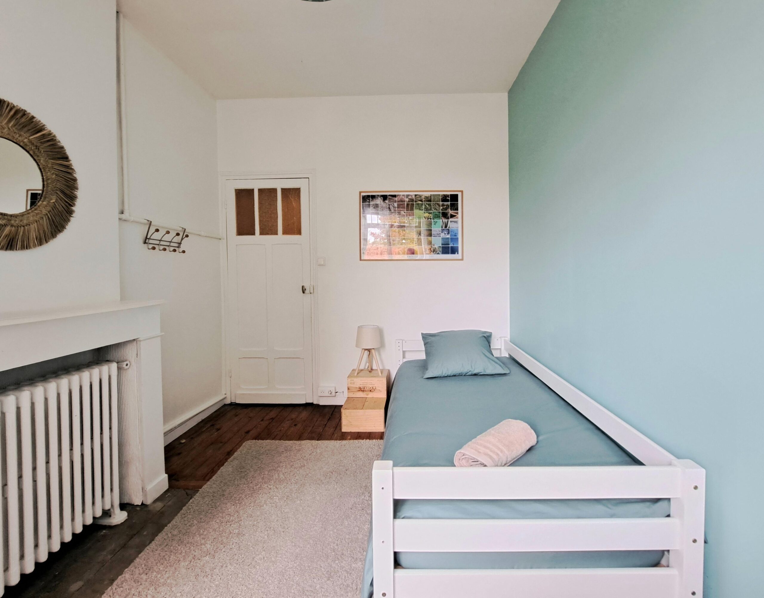 La première, donnant sur l’avant de la maison, est composée de 2 lits simples et de rangement pour vos vêtements.