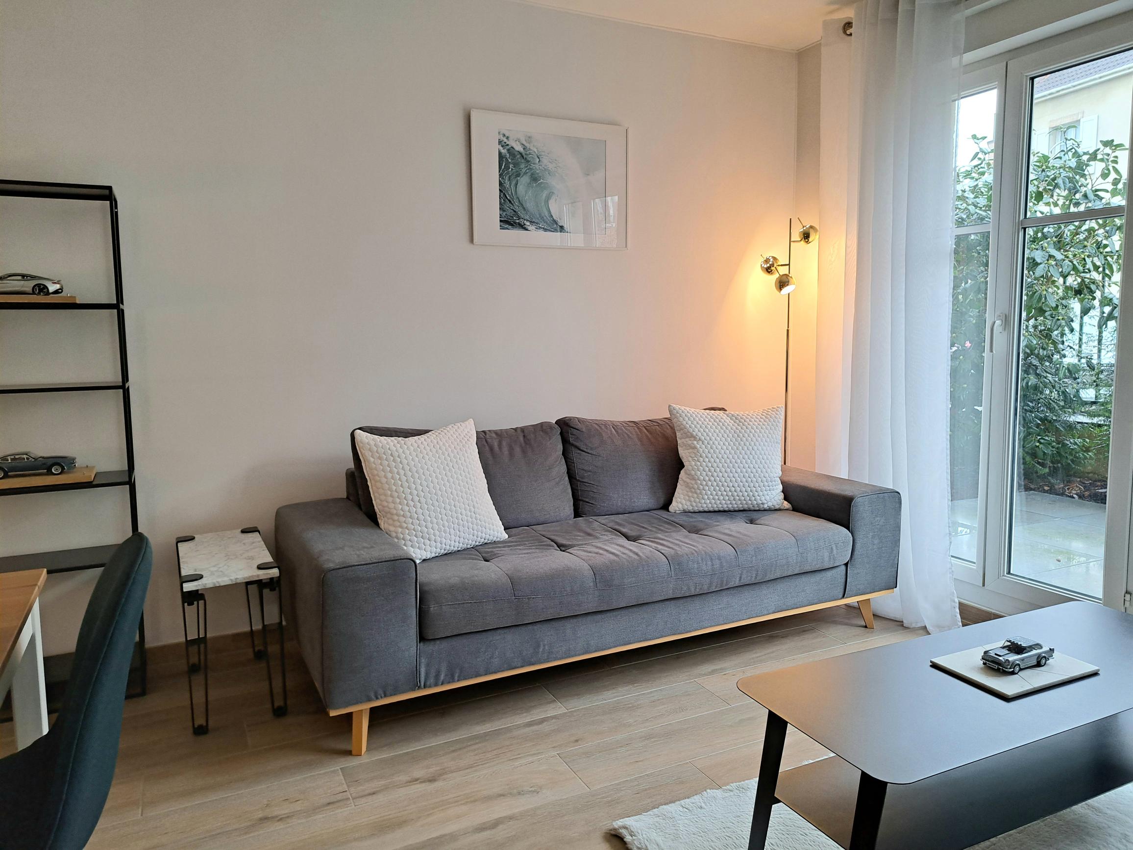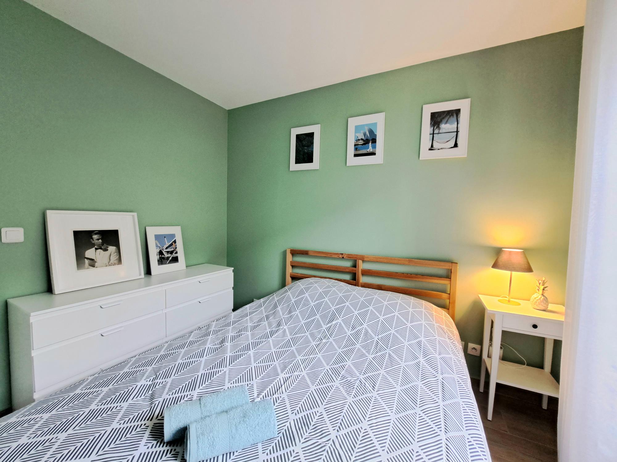 Ce logement dispose d’une belle chambre avec un lit double et une décoration soignée qui invite à la détente. Le salon spacieux et chaleureux est équipé d’un canapé confortable, idéal pour se relaxer après une journée bien remplie, ainsi que d’une table à manger pour partager de bons repas.