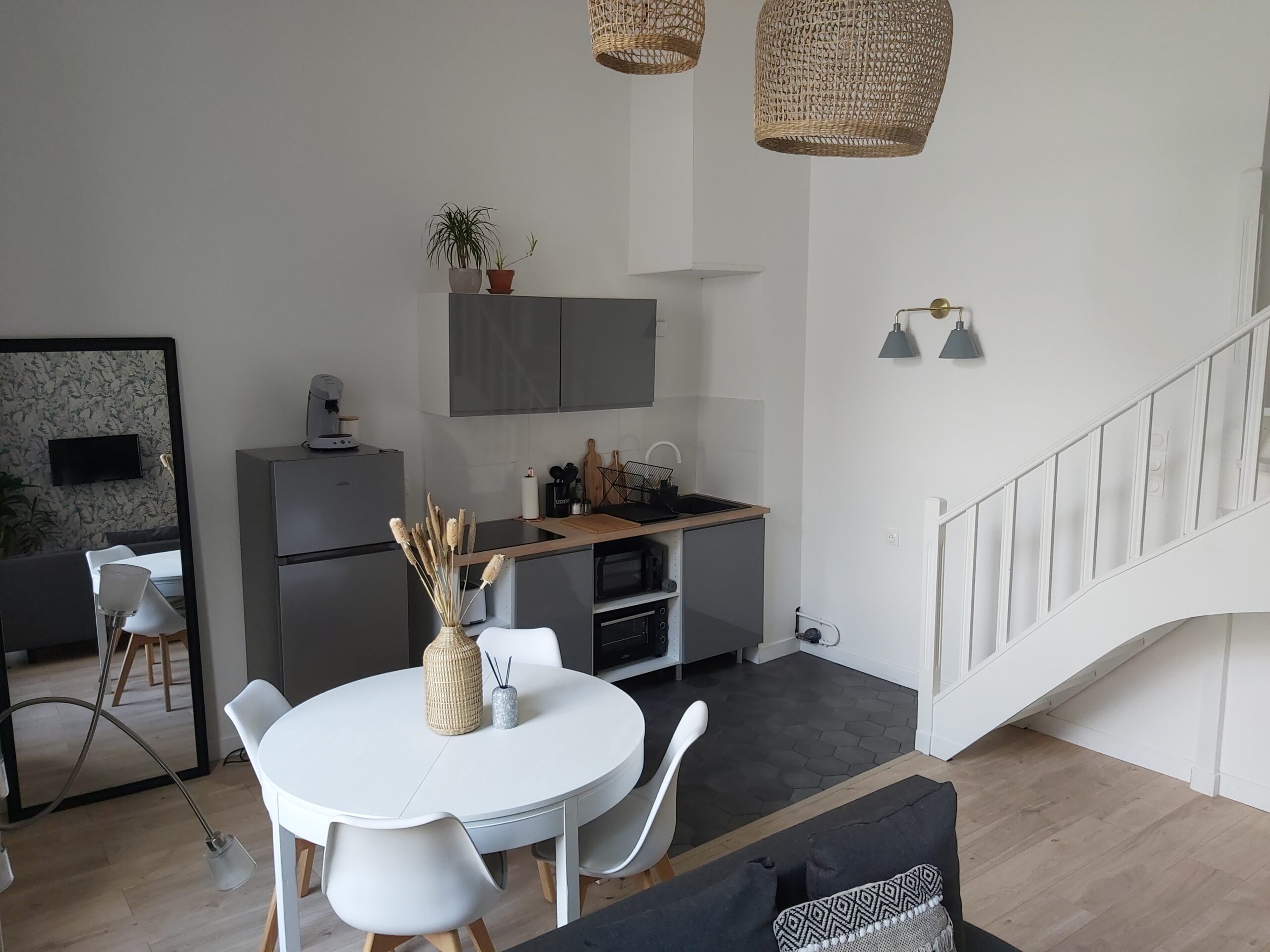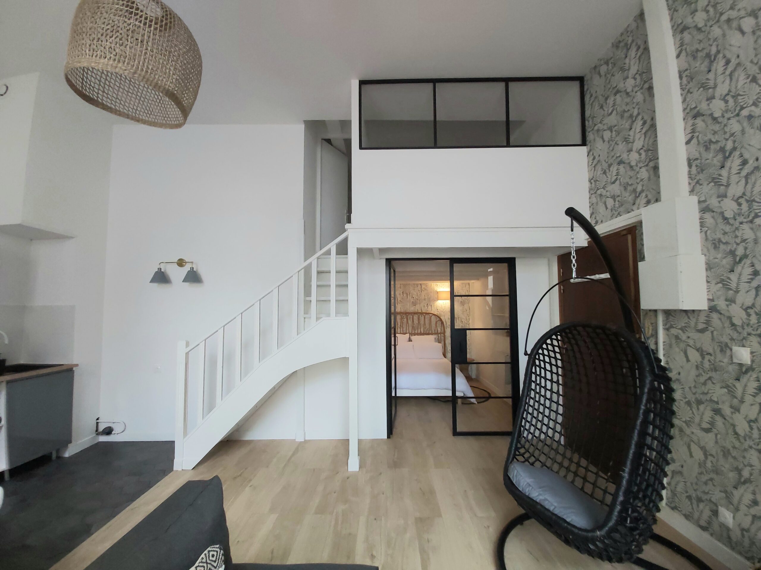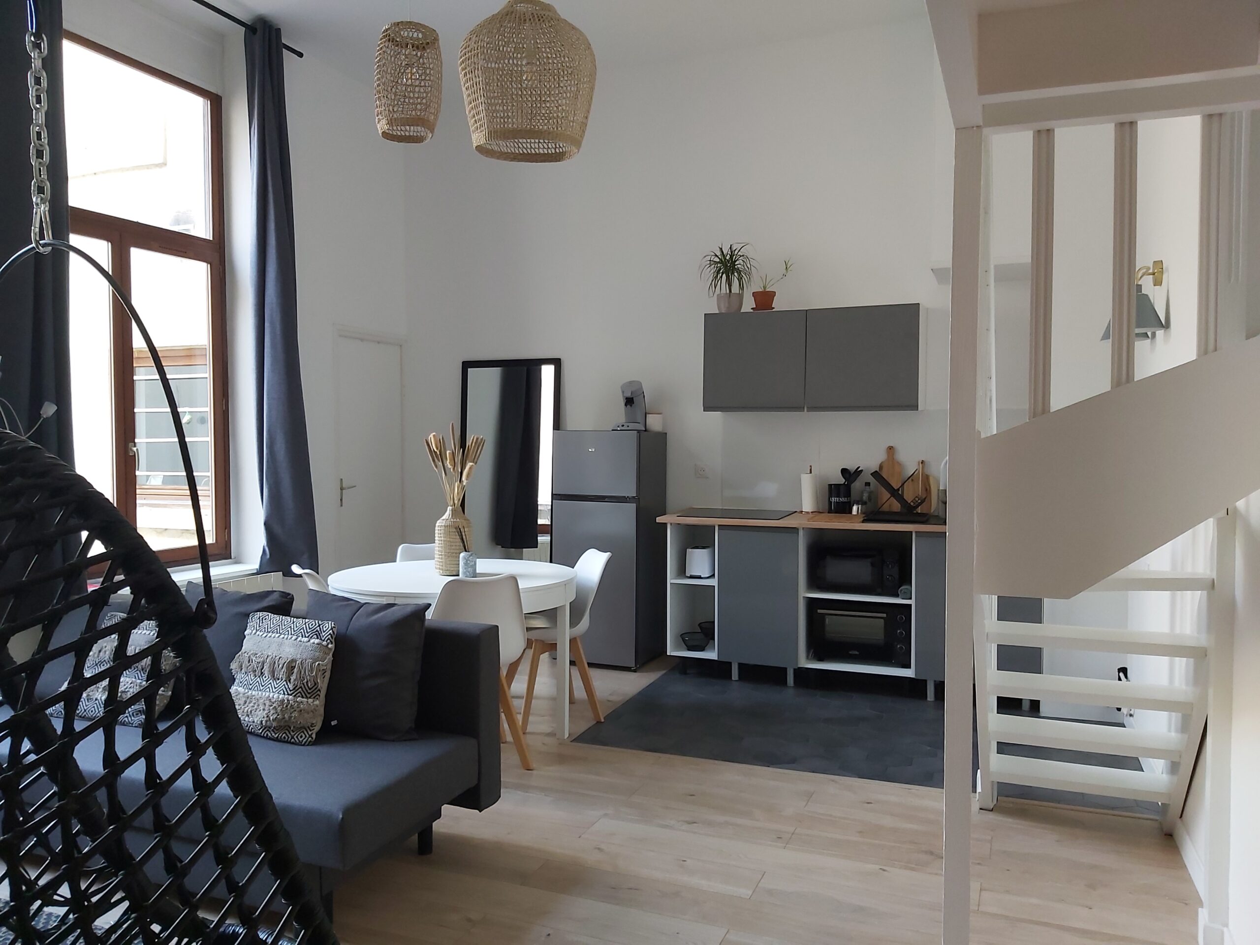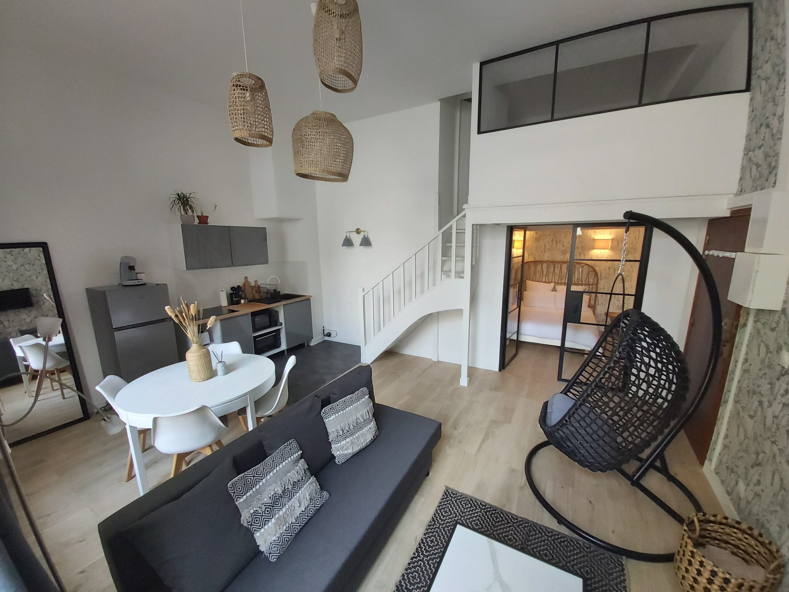 L’appartement est situé en RDC donc accessibilité garantie: il dispose d’une chambre en RDC et d’une autre chambre à l’étage. Le salon dispose d’un canapé convertible.