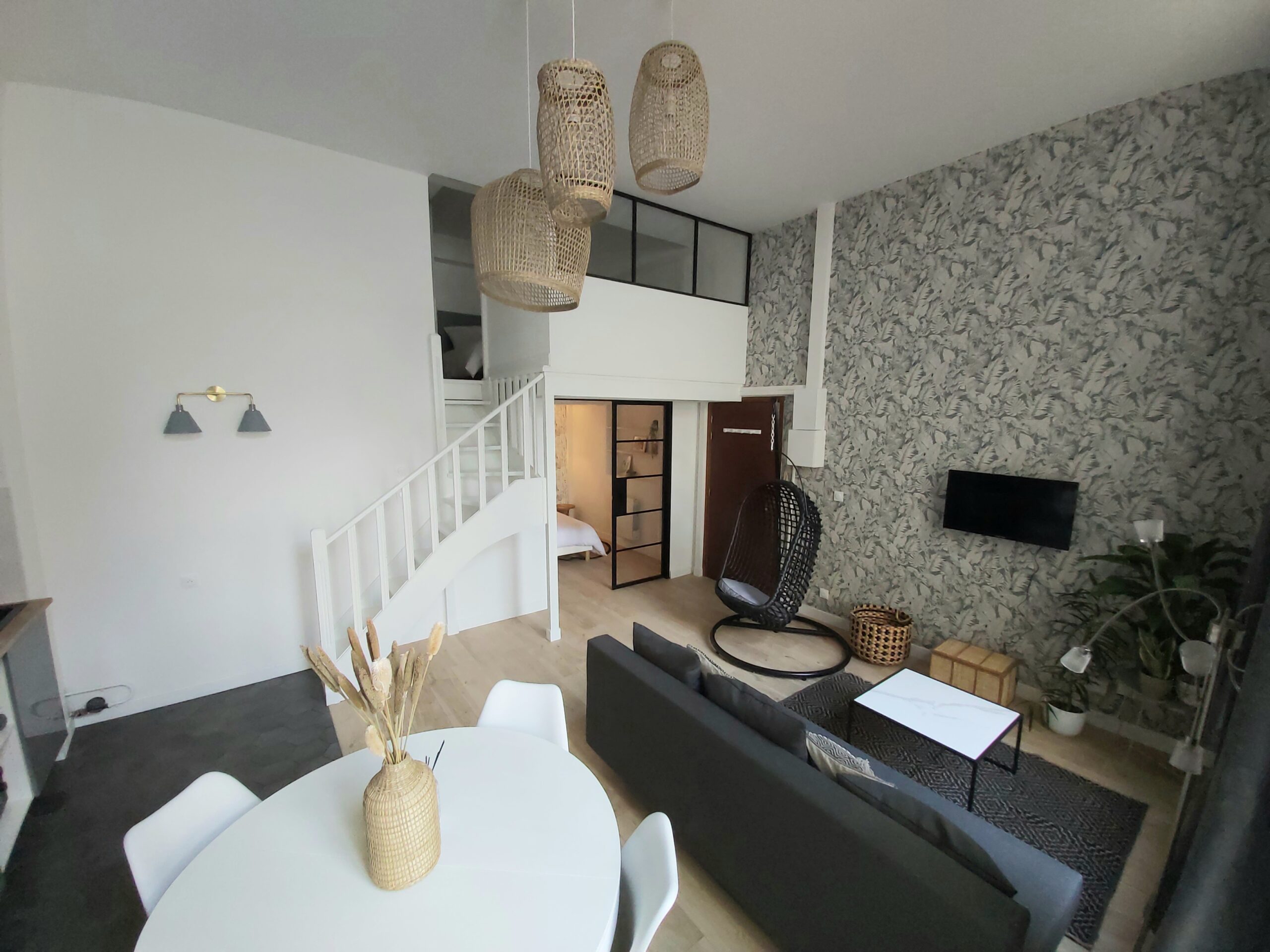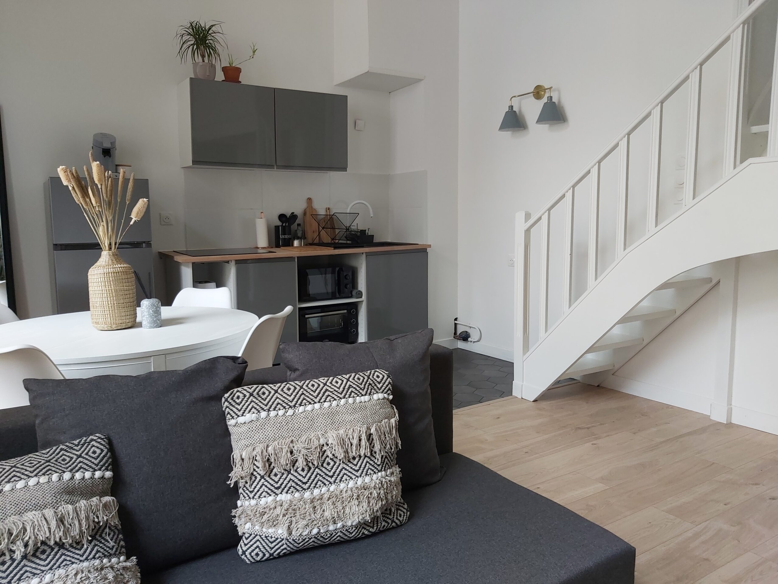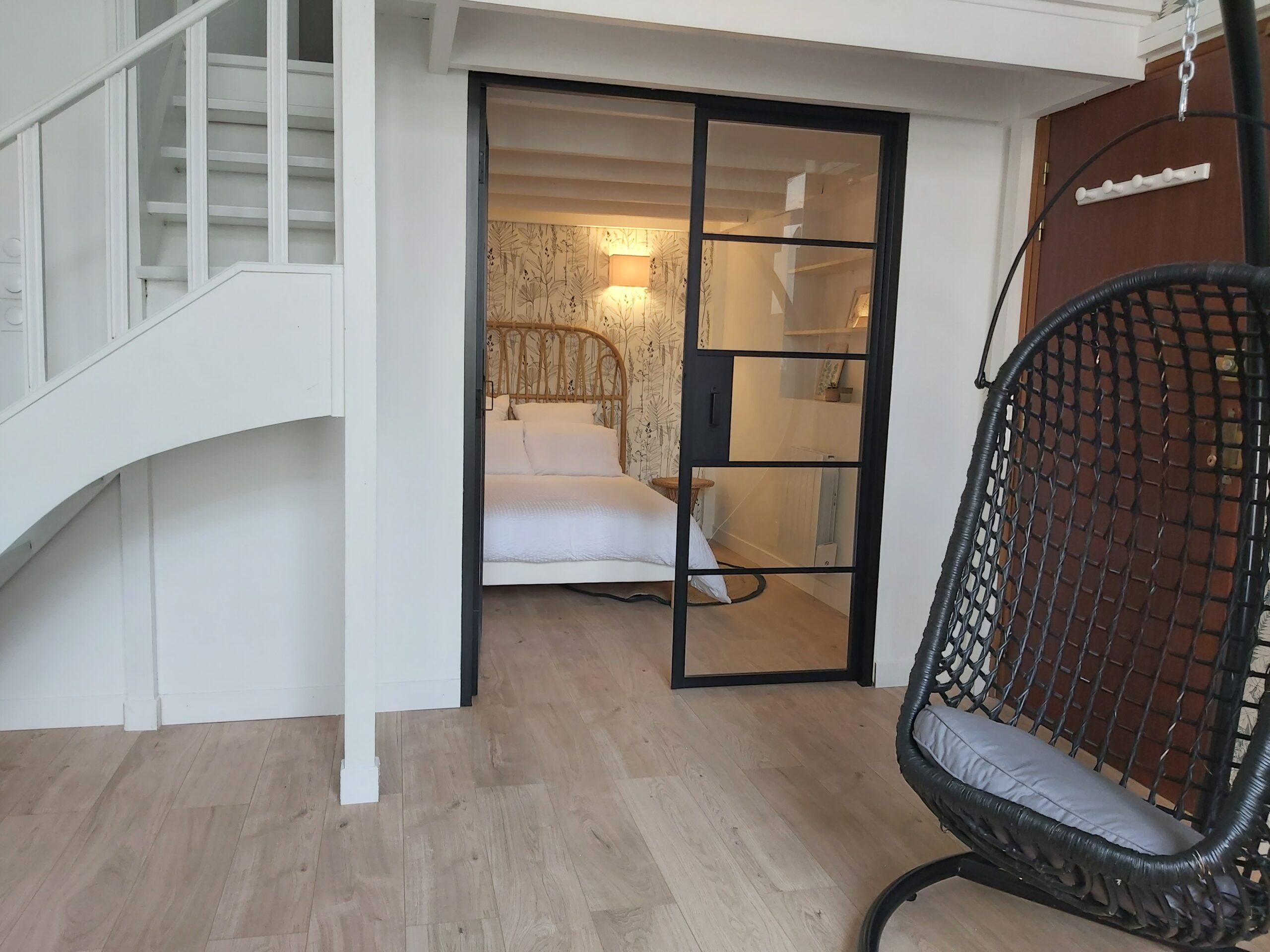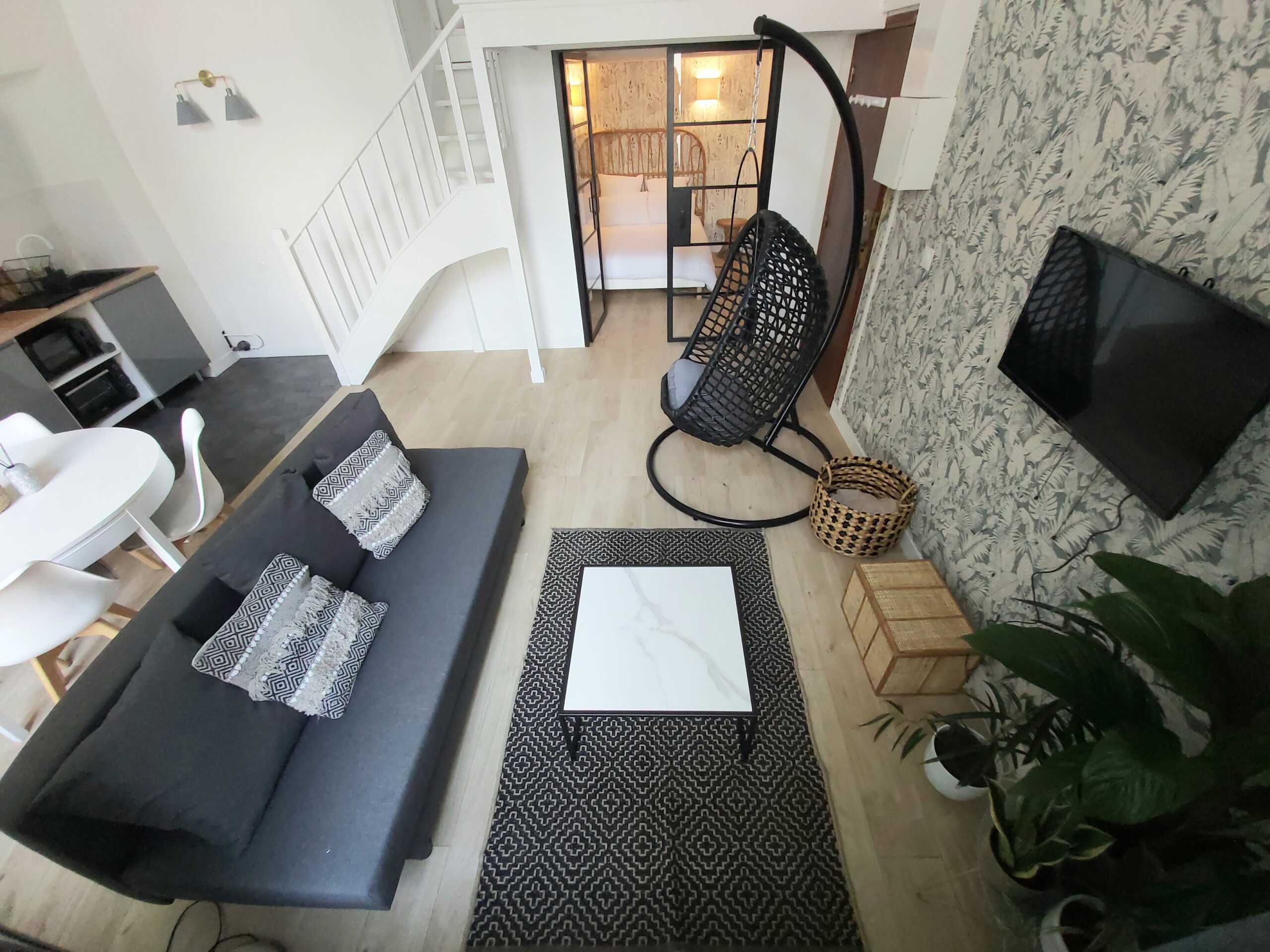 L’appartement est situé en RDC donc accessibilité garantie: il dispose d’une chambre en RDC et d’une autre chambre à l’étage. Le salon dispose d’un canapé convertible.
