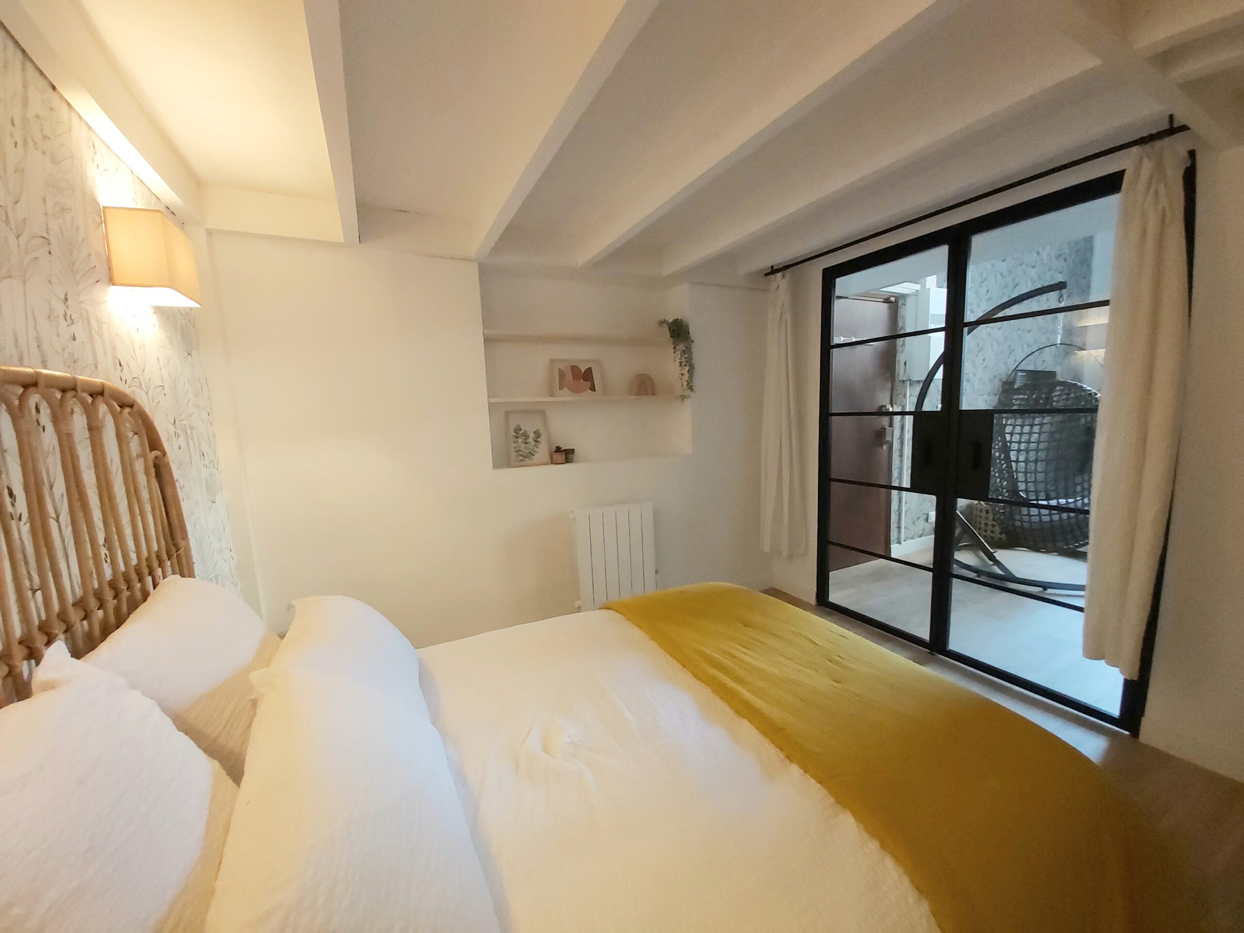 L’appartement vient d’être entièrement refait à neuf: il dispose de deux chambres et d’un grand salon avec cuisine ouverte.