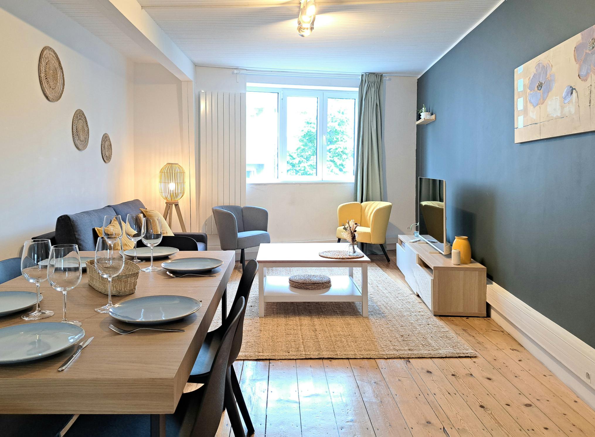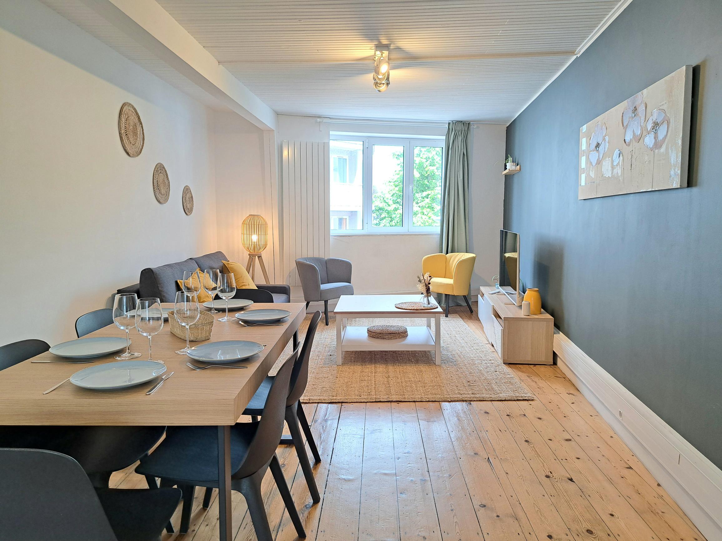 Profitez d’un logement élégant et central, à 8 minutes à pied de la gare Lille Europe. Notre appartement entièrement rénové vous séduira par sa décoration et son élégance. Il est spacieux et fonctionnel, idéal pour des séjours professionnels ou personnels, en famille ou entre amis.